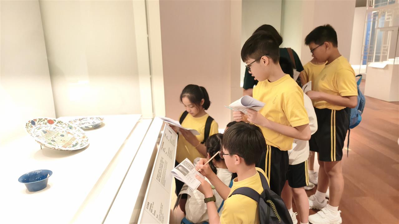 六年級同學今日走進香港故宮文化博物館,開展一場與歷史「近距離約會」的學習之旅。同學在展館內欣賞來自故宮博物院的珍貴文物,涵蓋瓷器、書畫與宮廷用品等多個類別;每一件展品都令大家嘖嘖稱奇,並體會到課本以外的中國歷史更立體、更生動。