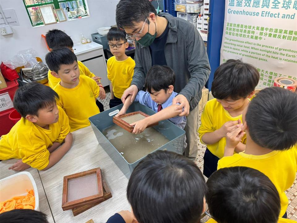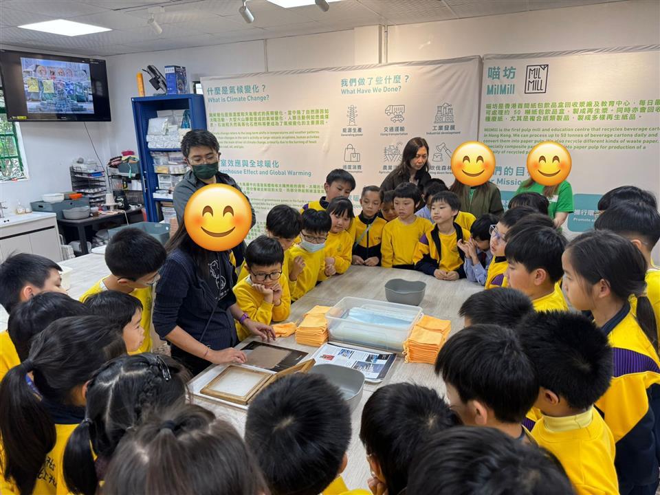 三年級同學參加「零廢.綠校園—環保參觀活動」,把課本上的「珍惜資源」轉化為實際體驗。於粉嶺「喵坊」紙包飲品盒回收廠內,同學們親眼見證紙包飲品盒如何經過清洗、拆解,並轉化為可再利用的原料。在再造紙工作坊中,每位同學都親自動手製作環保再造紙,讓「廢棄物」得到第二次生命。
