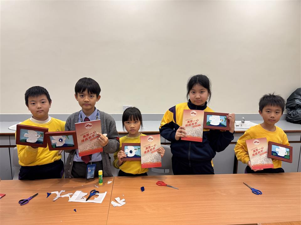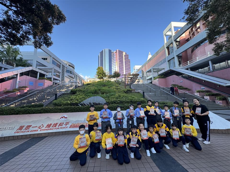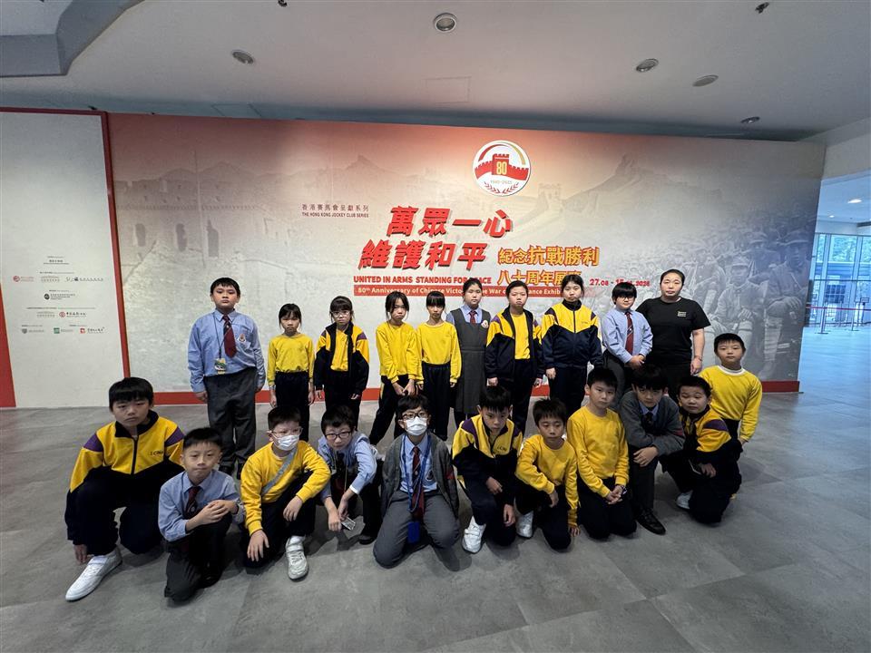 簡介:為紀念中國人民抗日戰爭暨世界反法西斯戰爭勝利八十周年,香港歷史博物館現正舉辦《香港賽馬會呈獻系列:萬眾一心 維護和平—紀念抗戰勝利八十周年展覽》及一系列工作坊,向大眾推廣和平信息。學校安排了4C班同學參觀展覽並參與與展覽主題相關的《絨毛拼貼製作》工作坊。