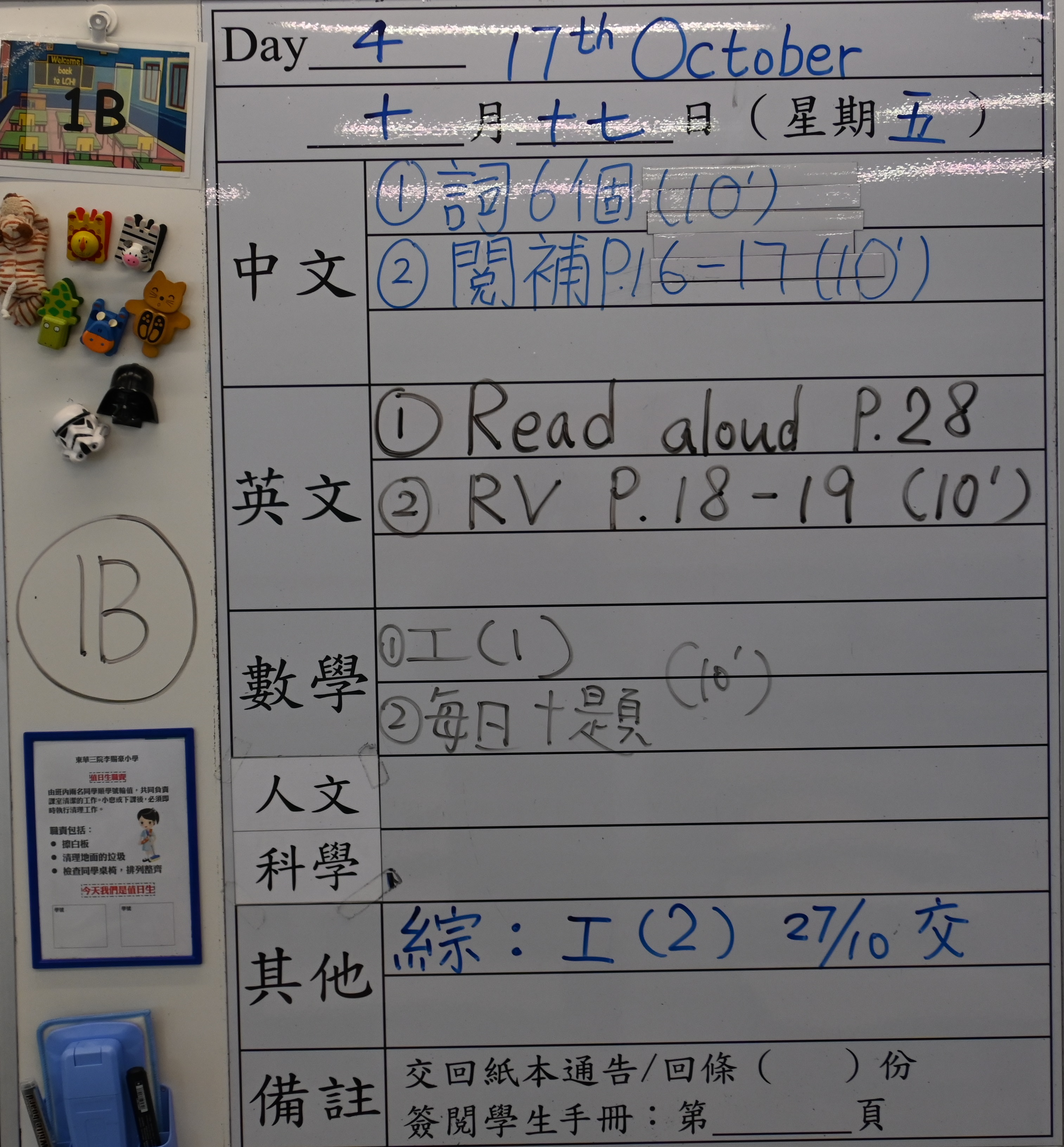 小一小二家課日誌