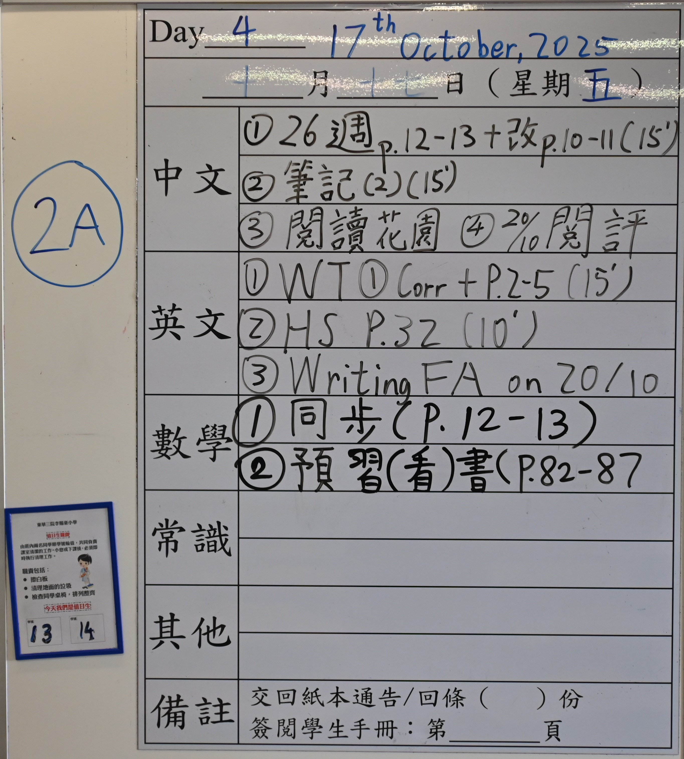 班別家課
