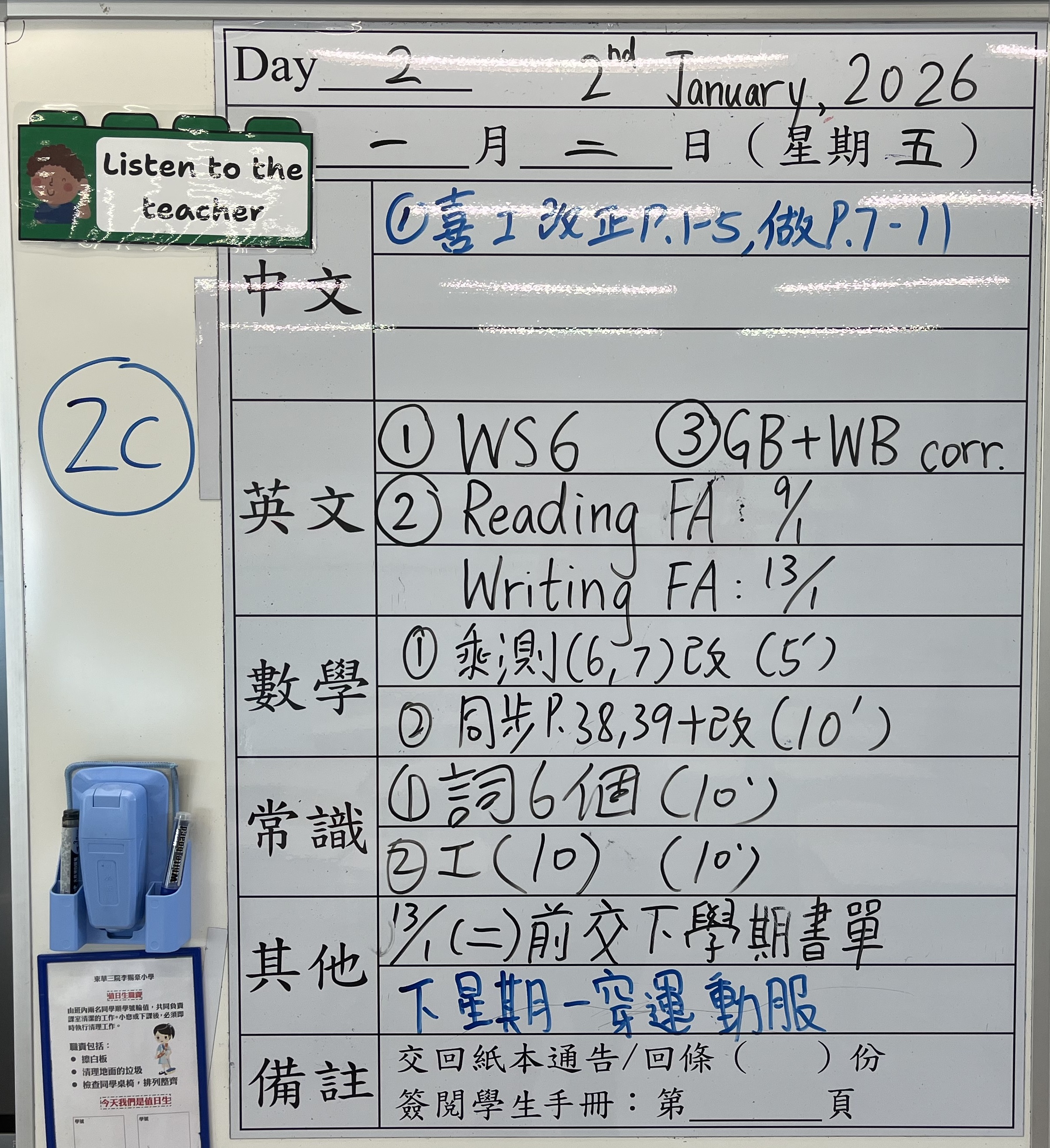 小一小二家課日誌