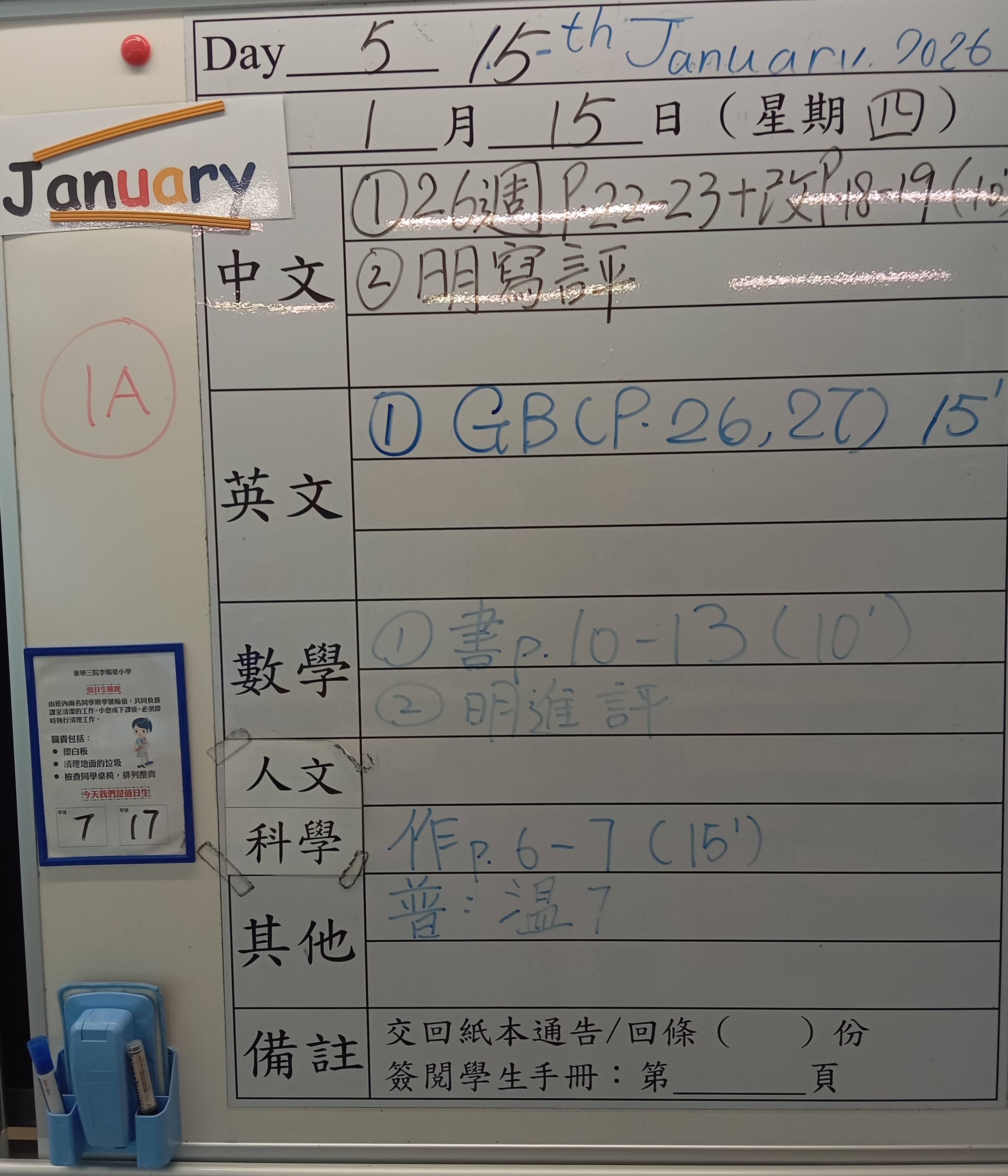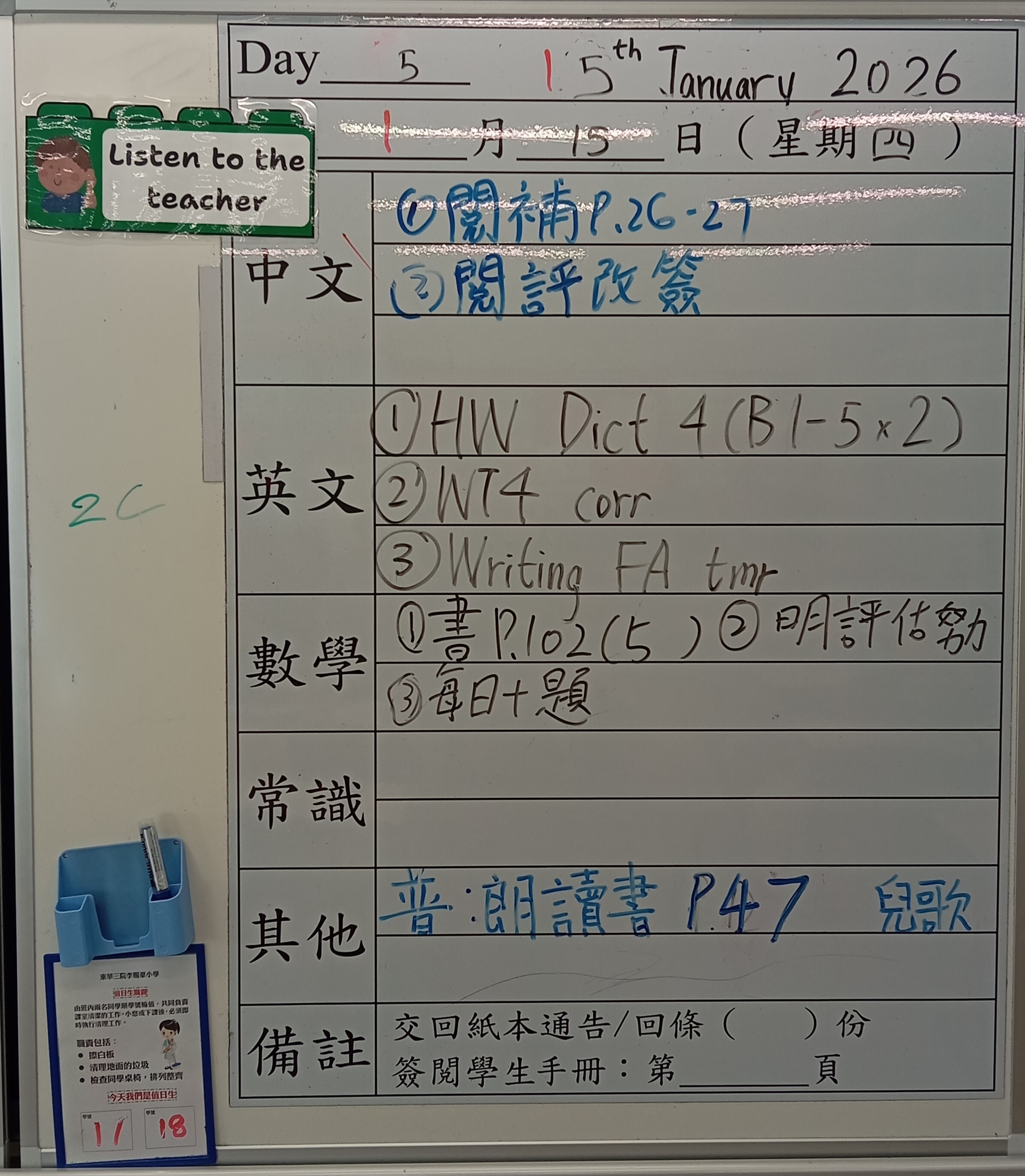 小一小二家課日誌