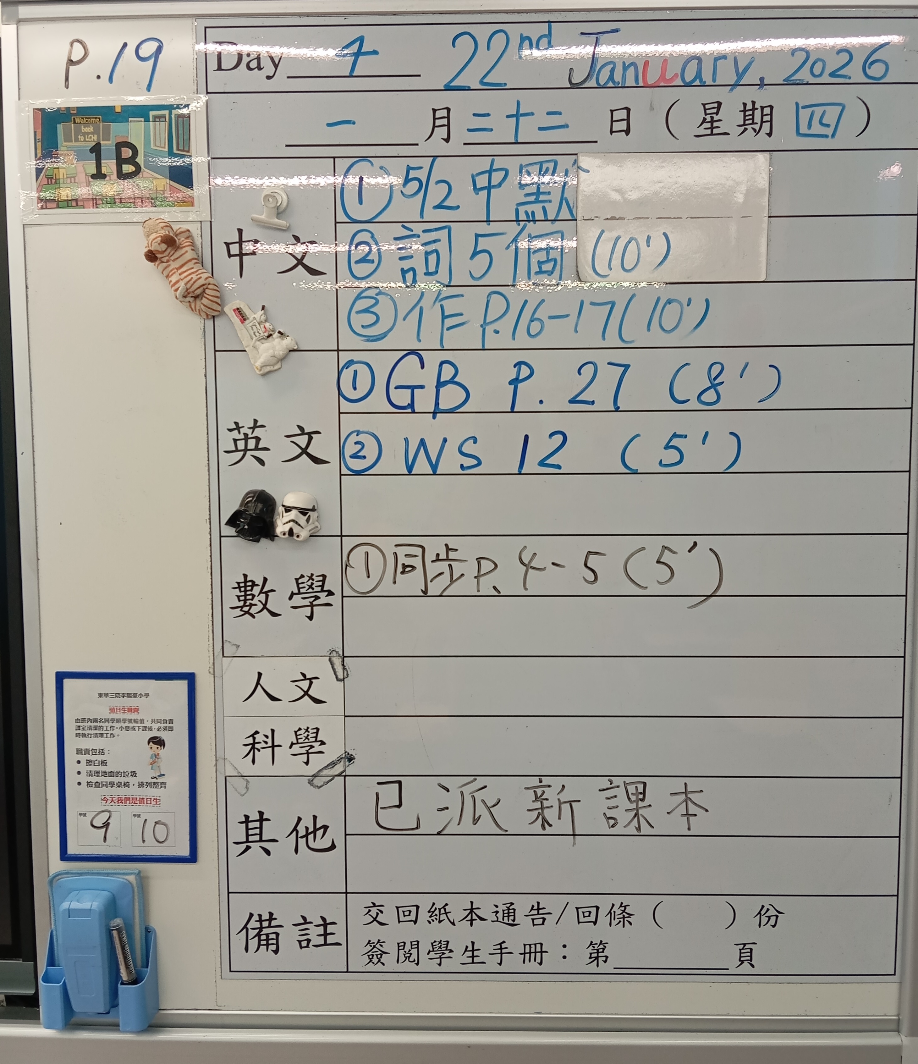 小一小二家課日誌