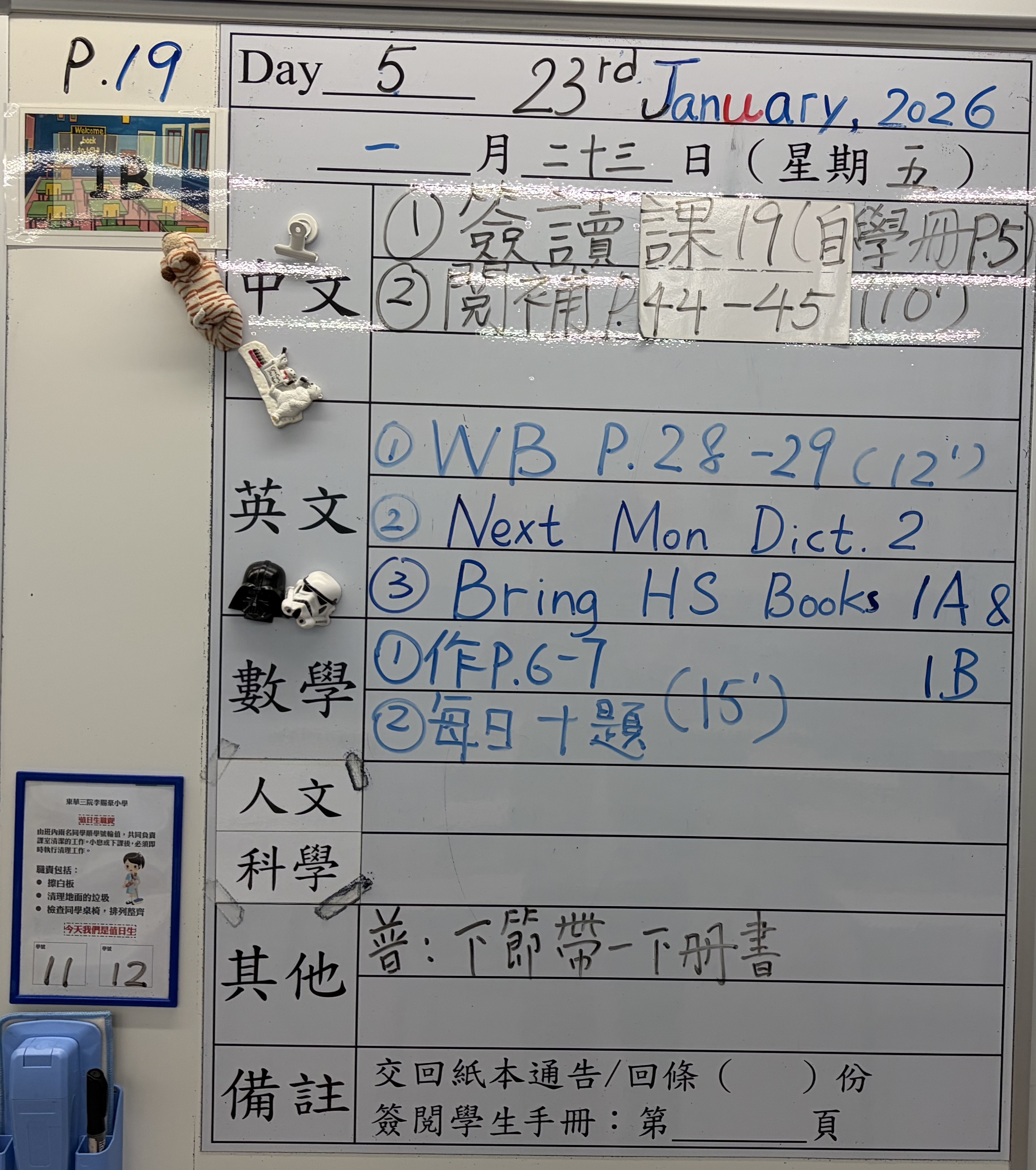 小一小二家課日誌