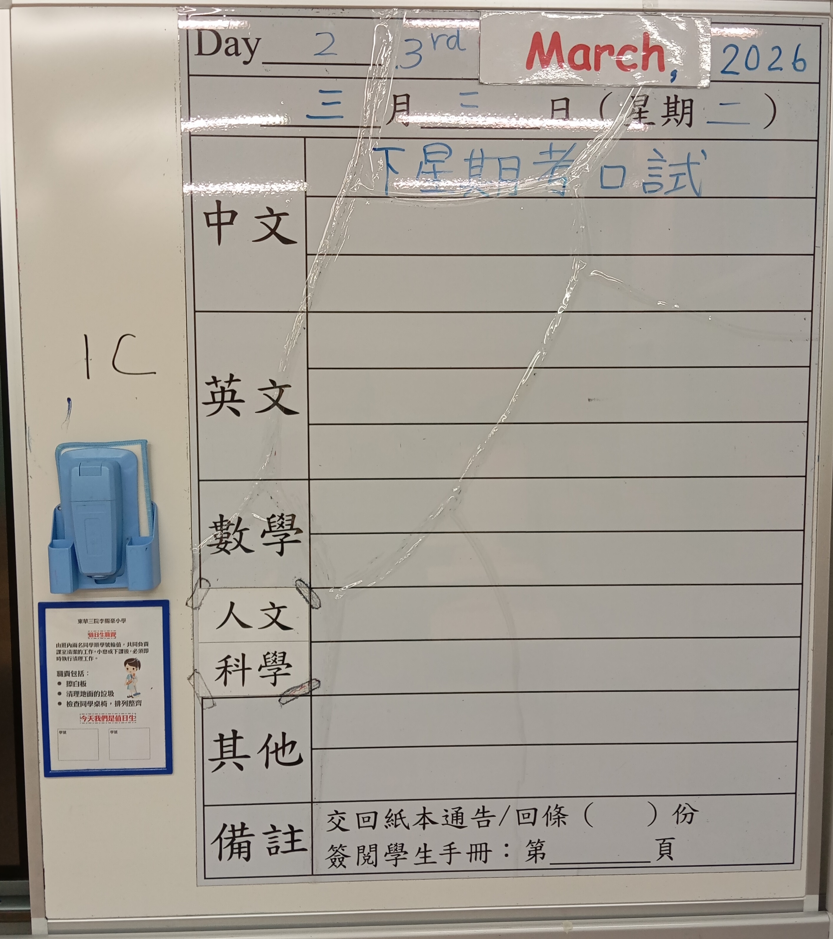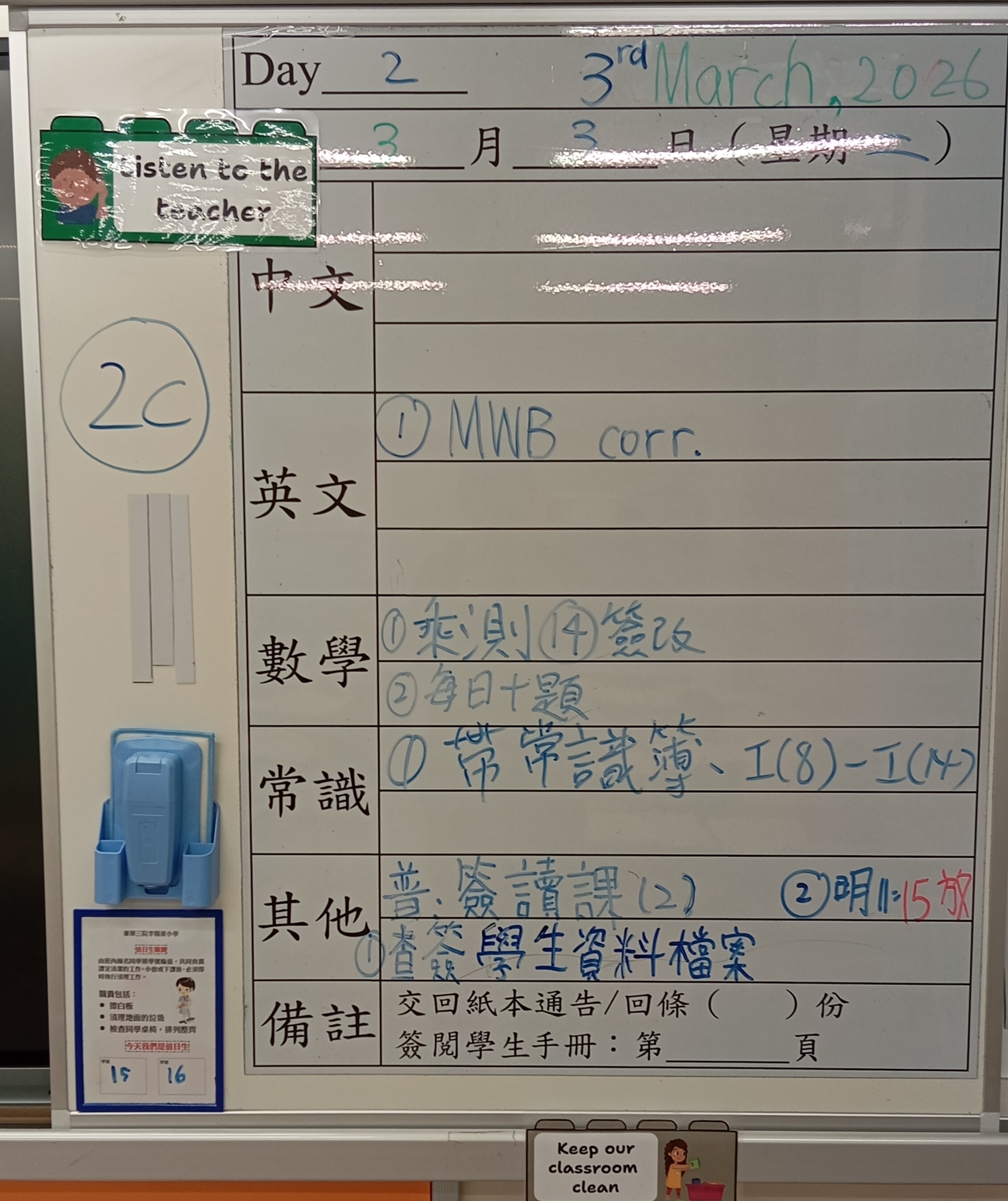 小一小二家課日誌