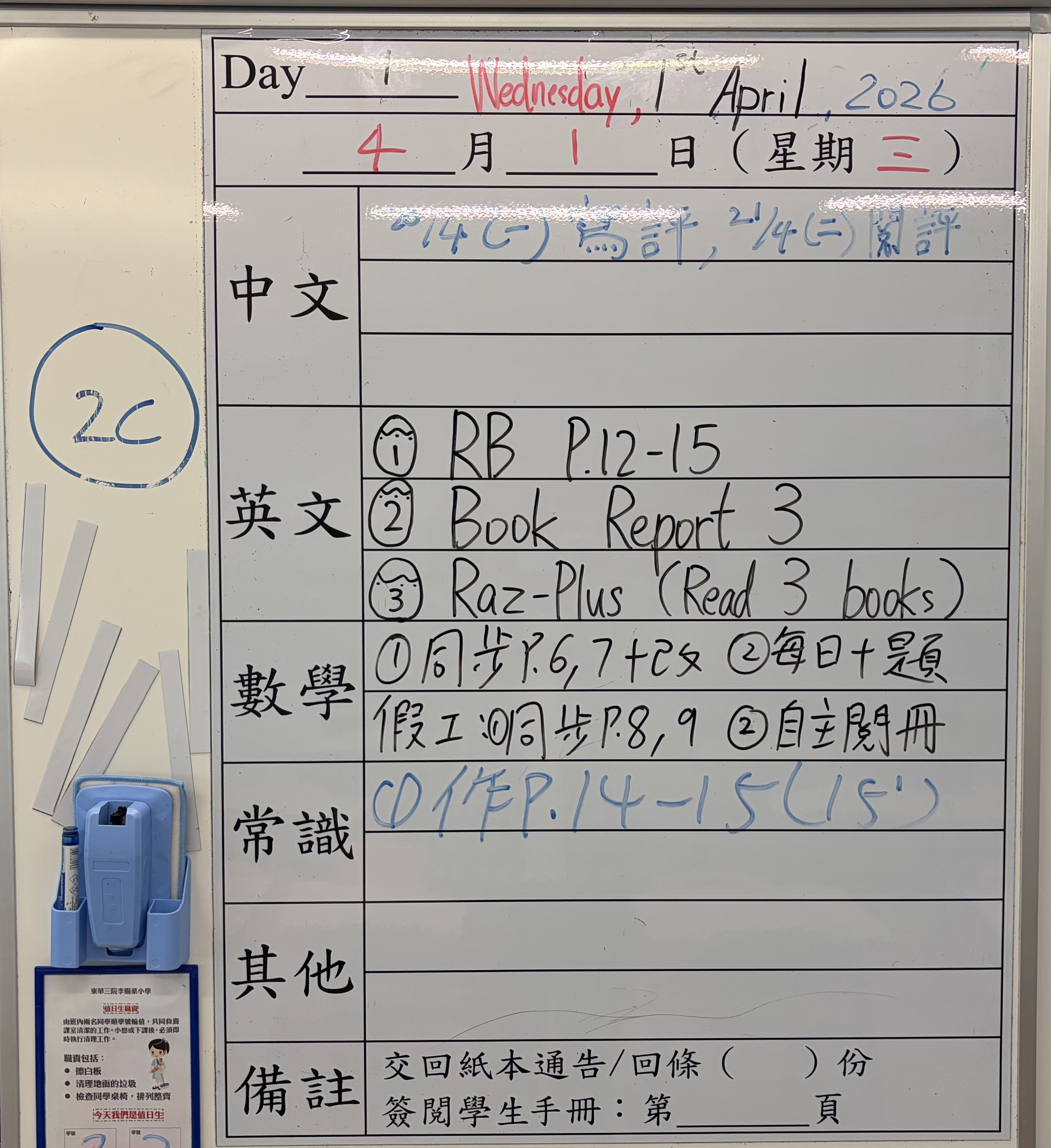 小一小二家課日誌