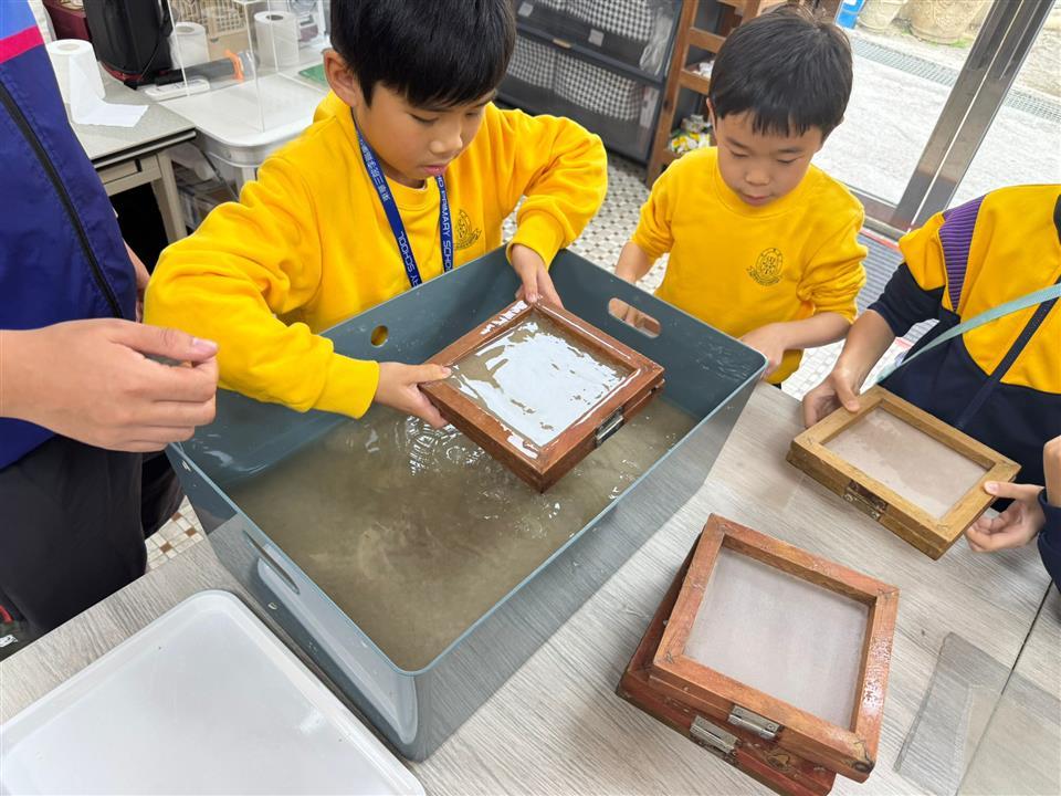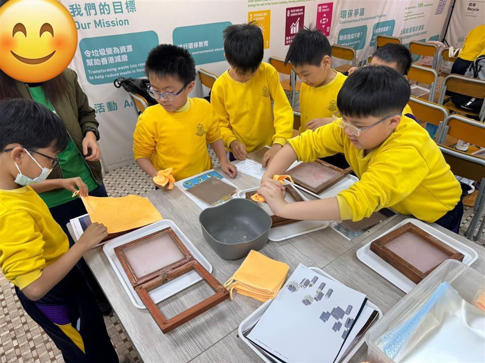 三年級同學參加「零廢.綠校園—環保參觀活動」,把課本上的「珍惜資源」轉化為實際體驗。於粉嶺「喵坊」紙包飲品盒回收廠內,同學們親眼見證紙包飲品盒如何經過清洗、拆解,並轉化為可再利用的原料。在再造紙工作坊中,每位同學都親自動手製作環保再造紙,讓「廢棄物」得到第二次生命。