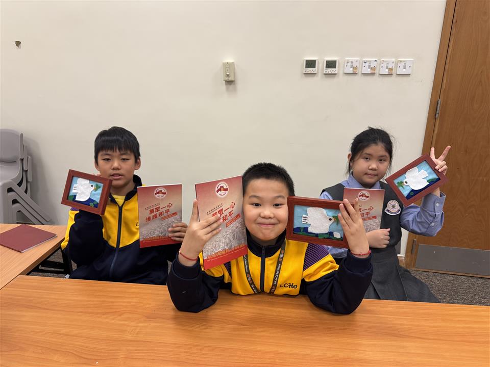 簡介:為紀念中國人民抗日戰爭暨世界反法西斯戰爭勝利八十周年,香港歷史博物館現正舉辦《香港賽馬會呈獻系列:萬眾一心 維護和平—紀念抗戰勝利八十周年展覽》及一系列工作坊,向大眾推廣和平信息。學校安排了4C班同學參觀展覽並參與與展覽主題相關的《絨毛拼貼製作》工作坊。