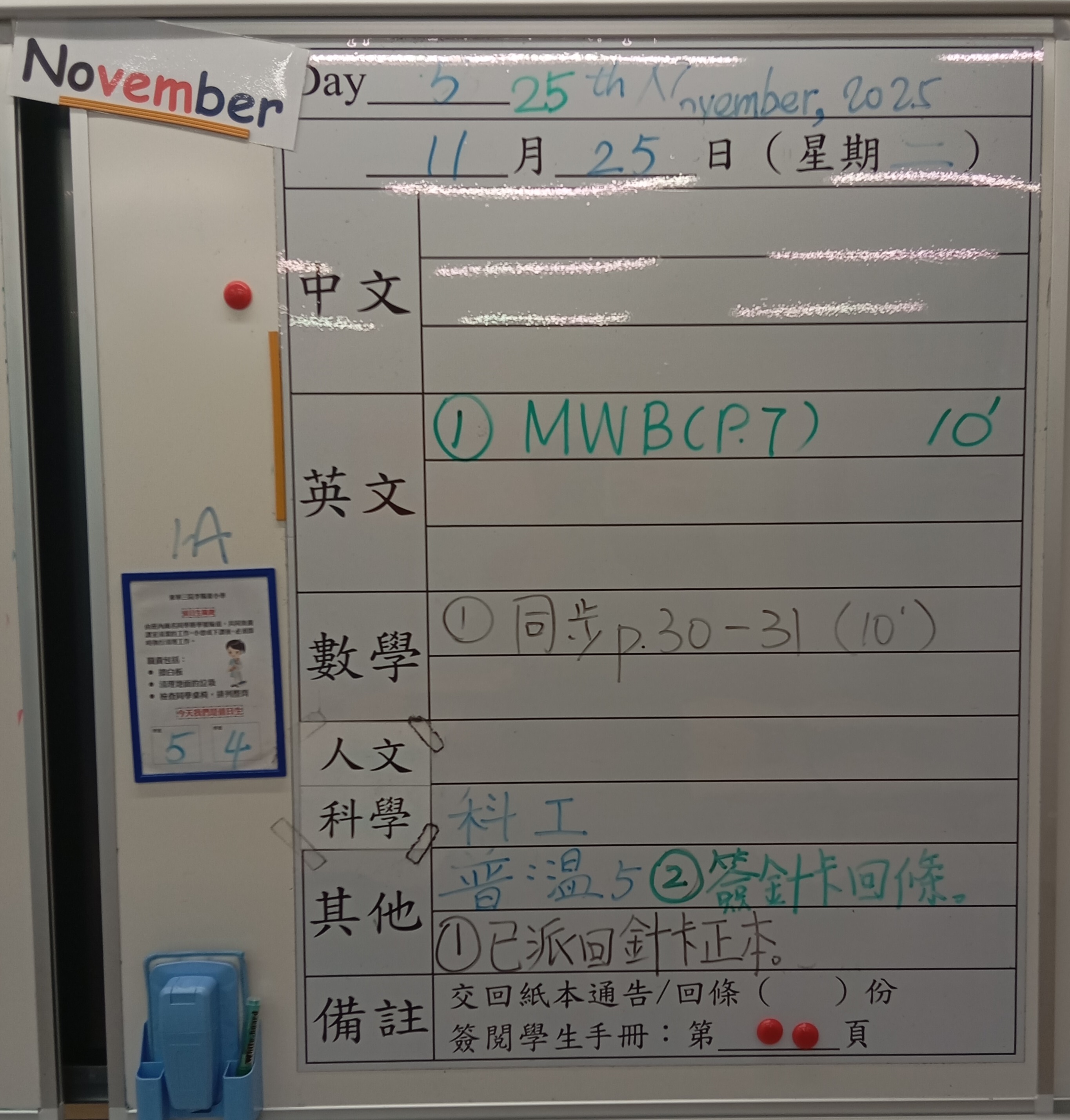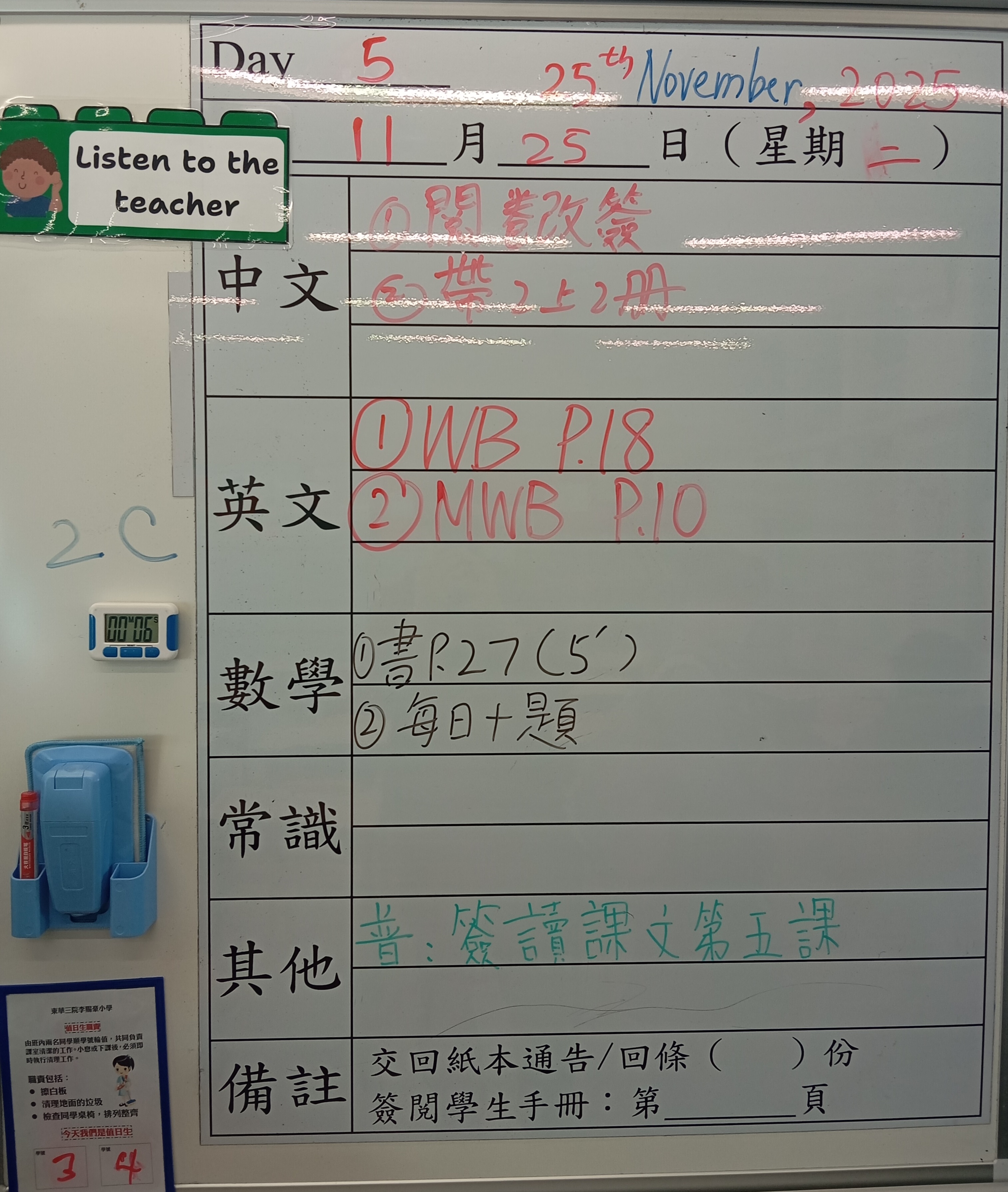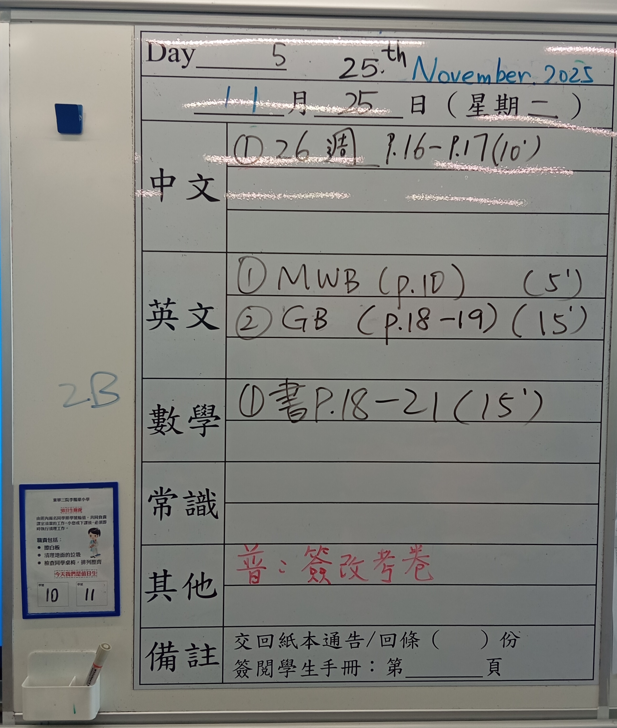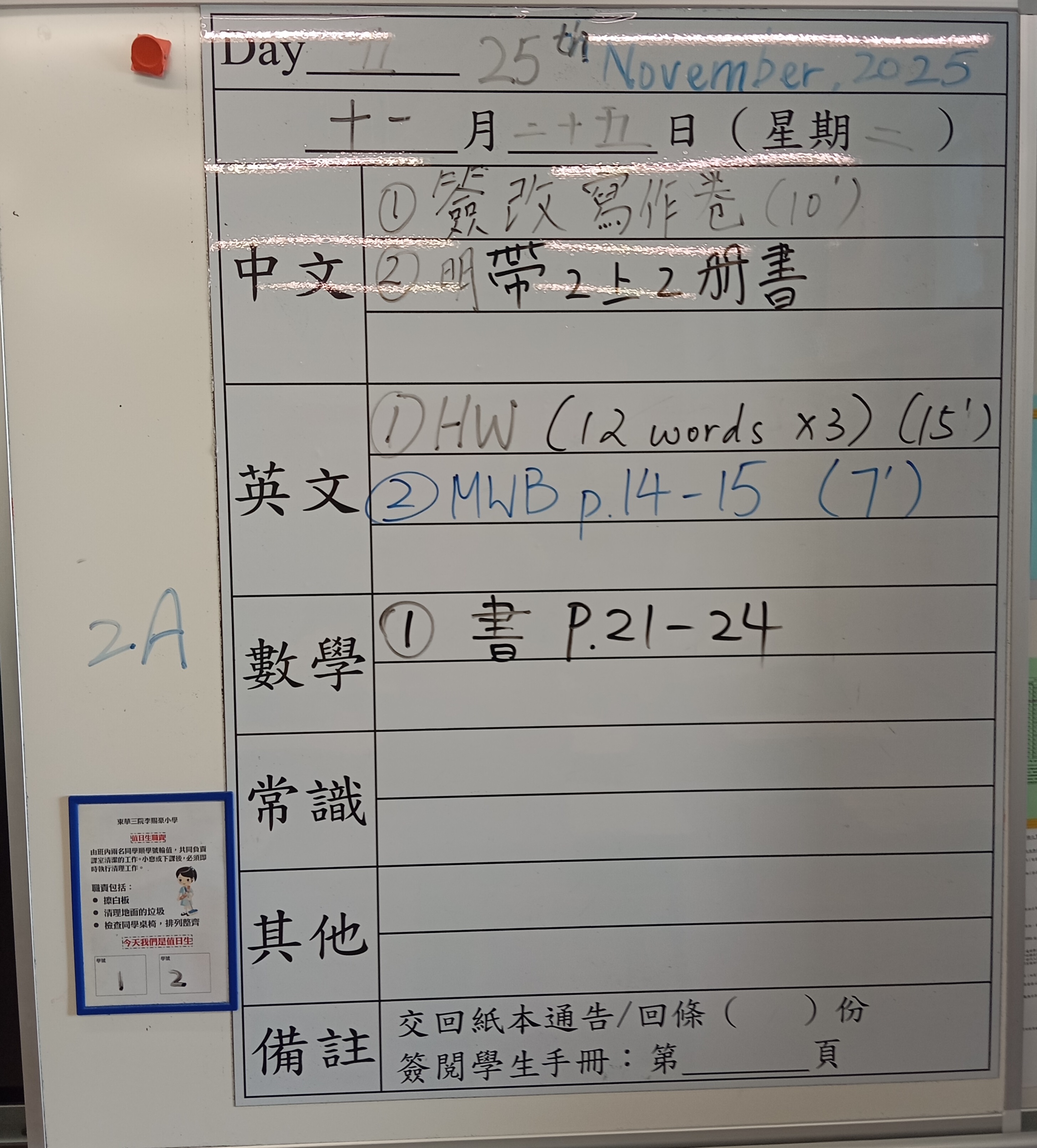 小一小二家課日誌