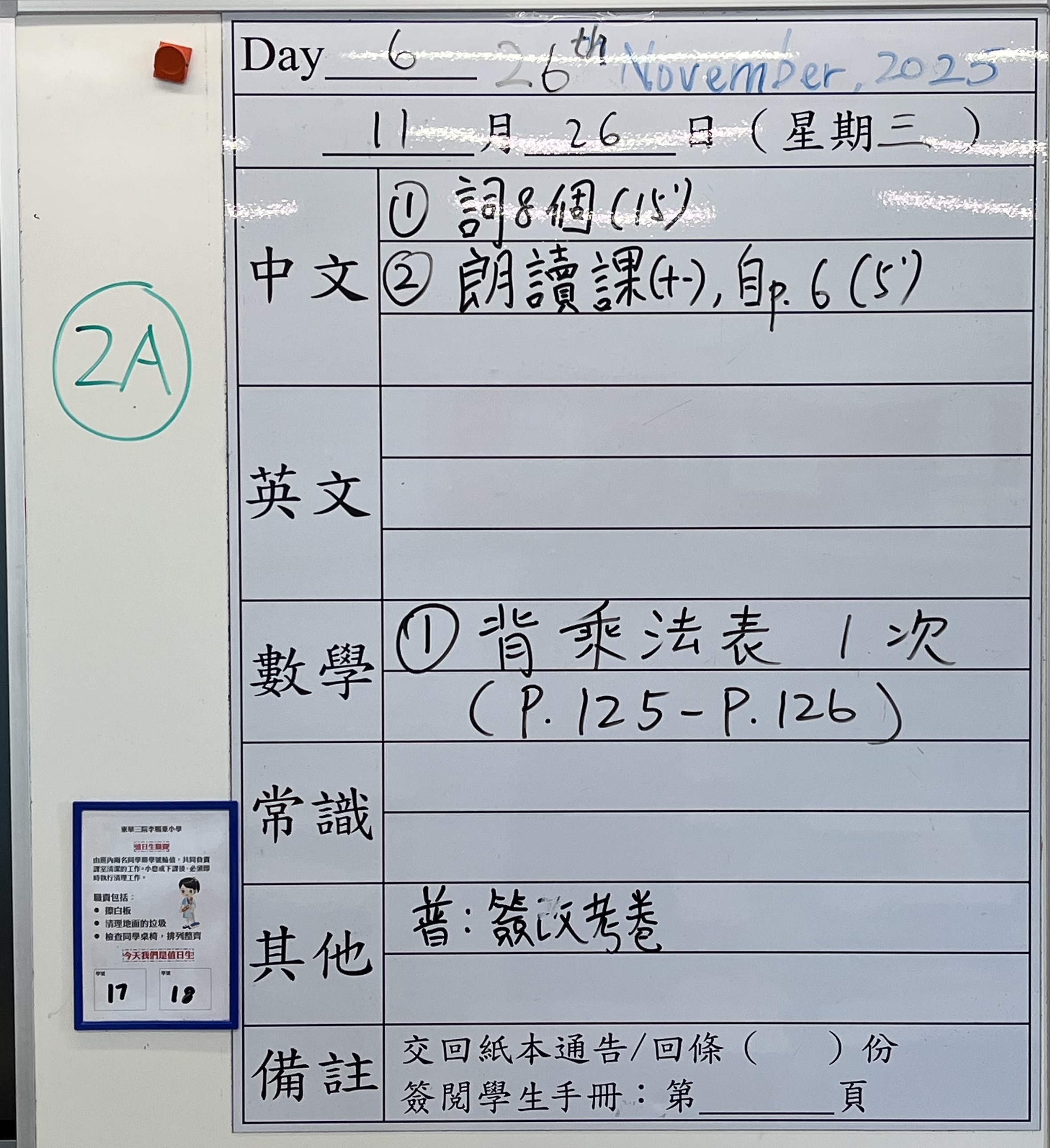 小一小二家課日誌