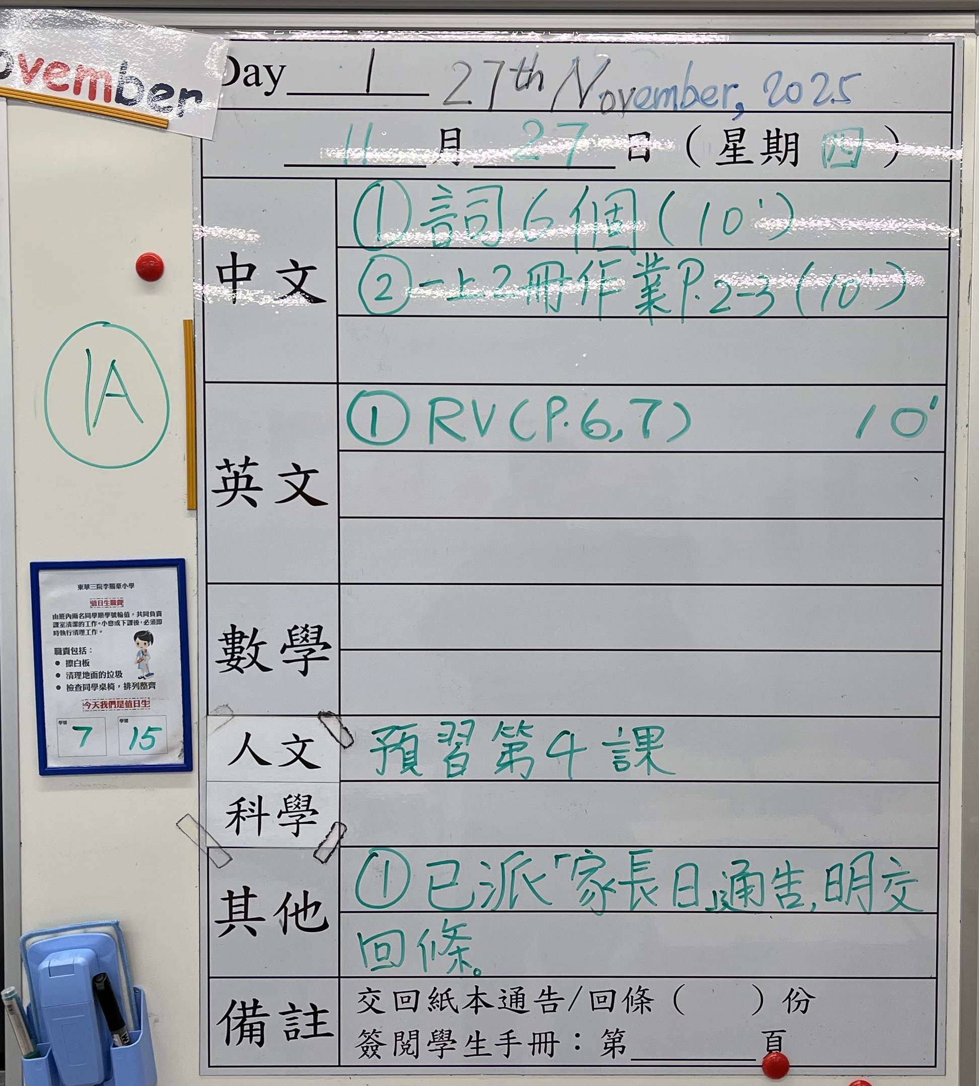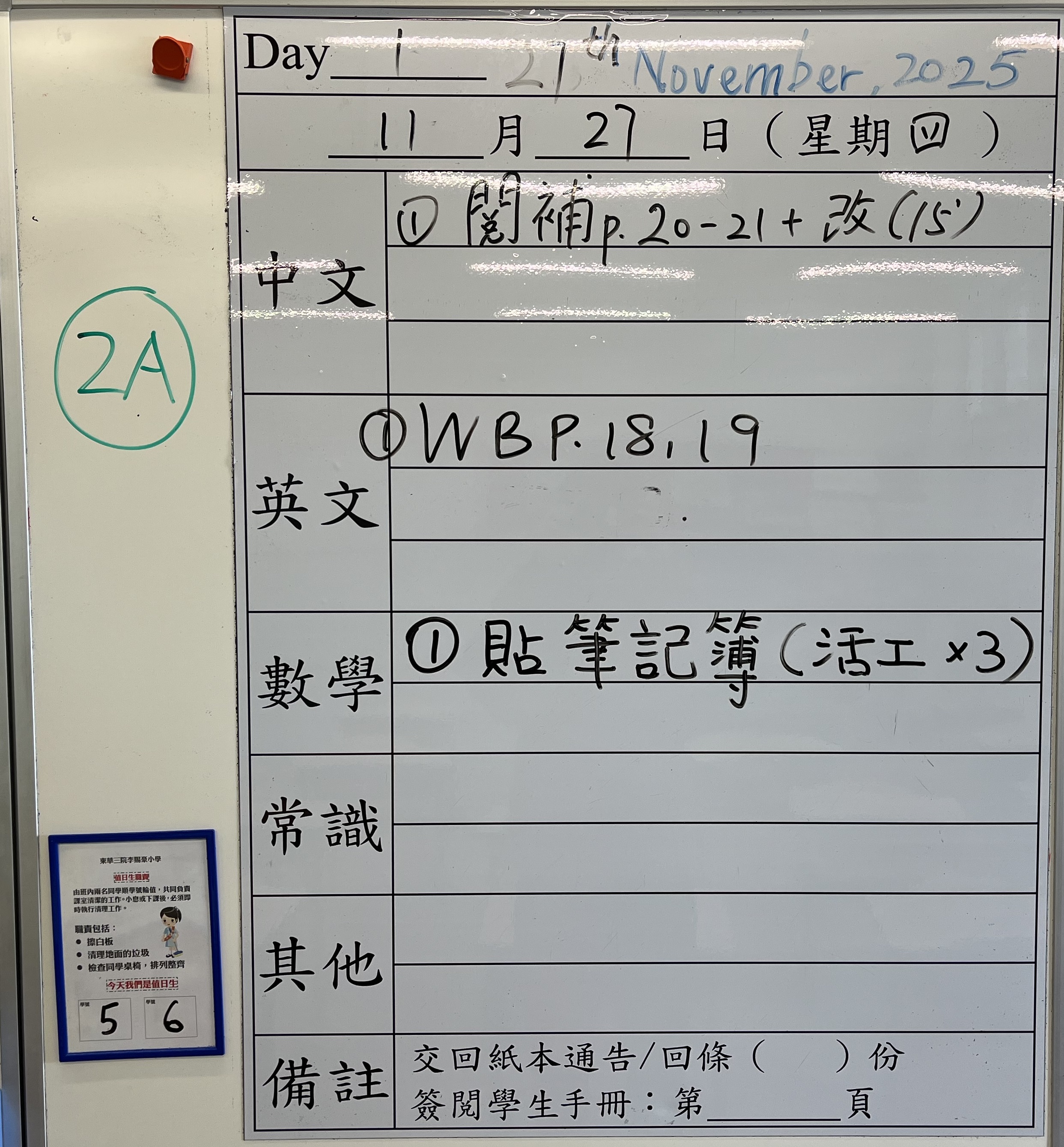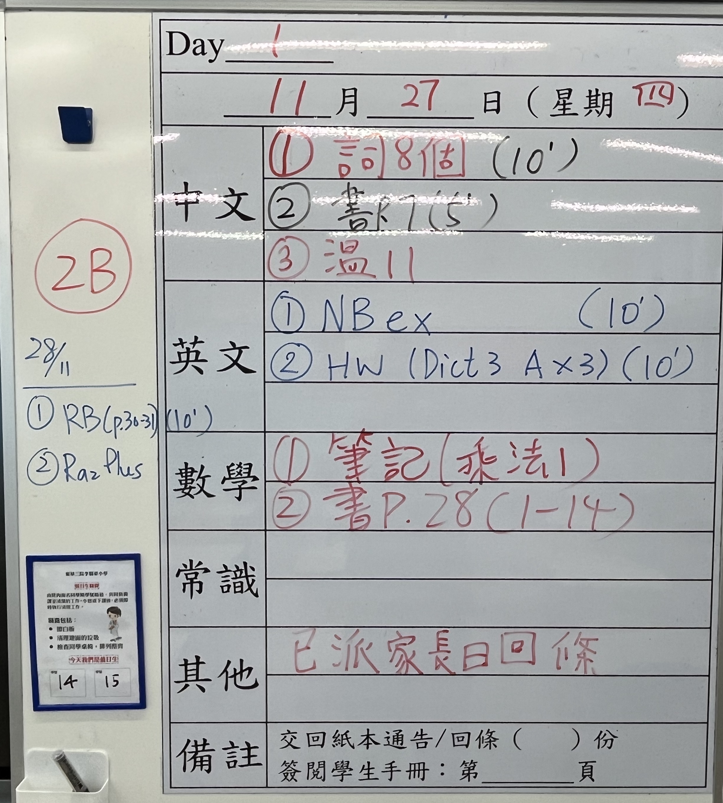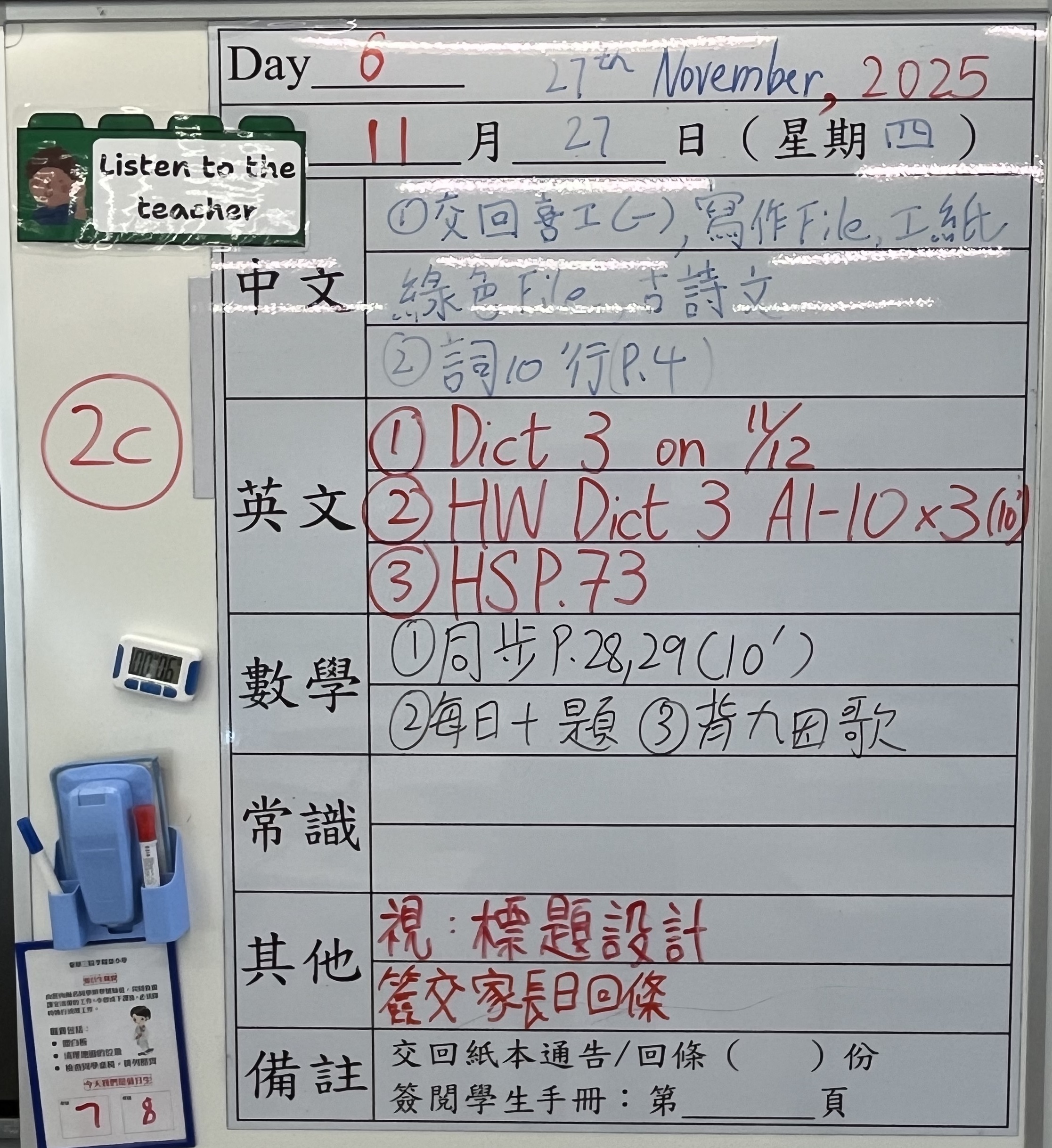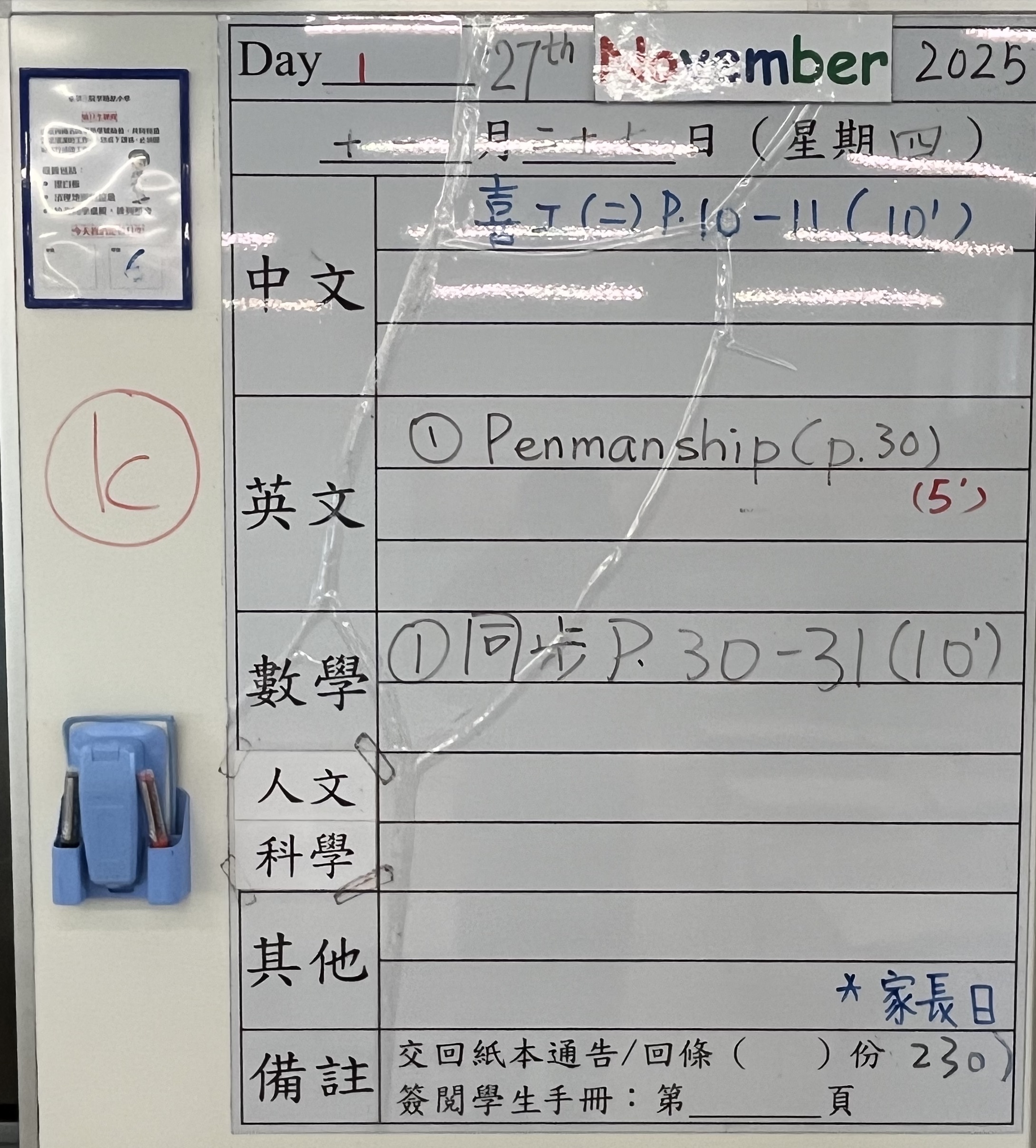 小一小二家課日誌