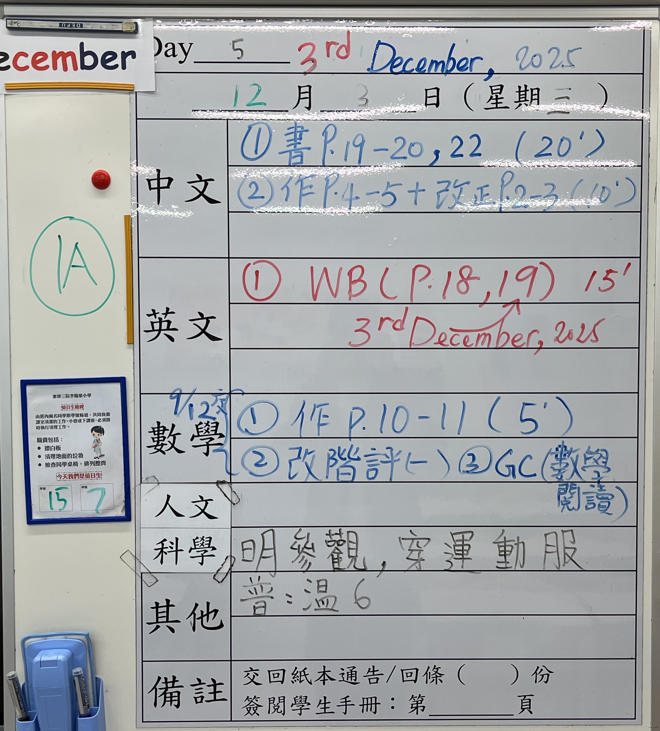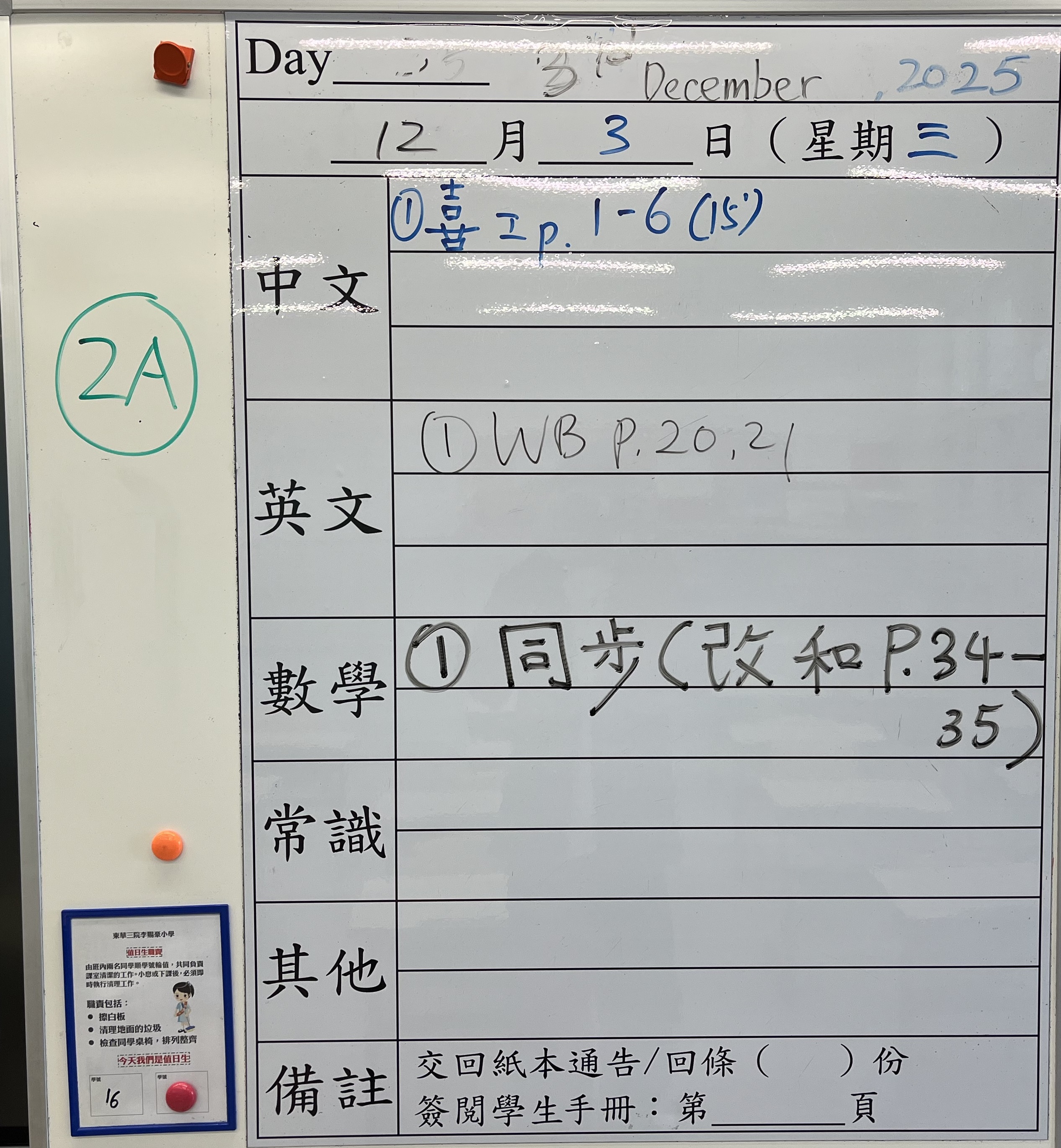 班別家課