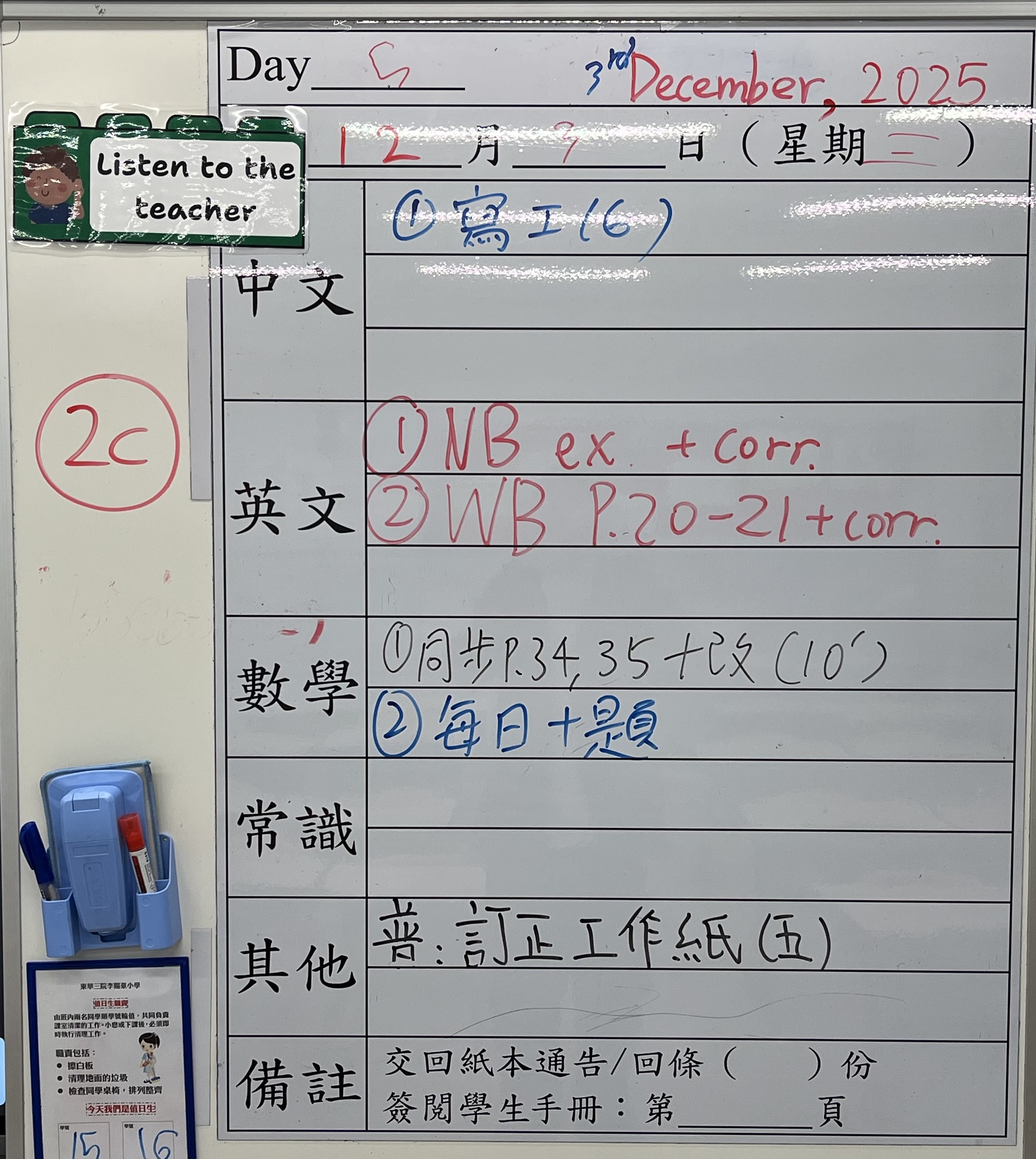 小一小二家課日誌