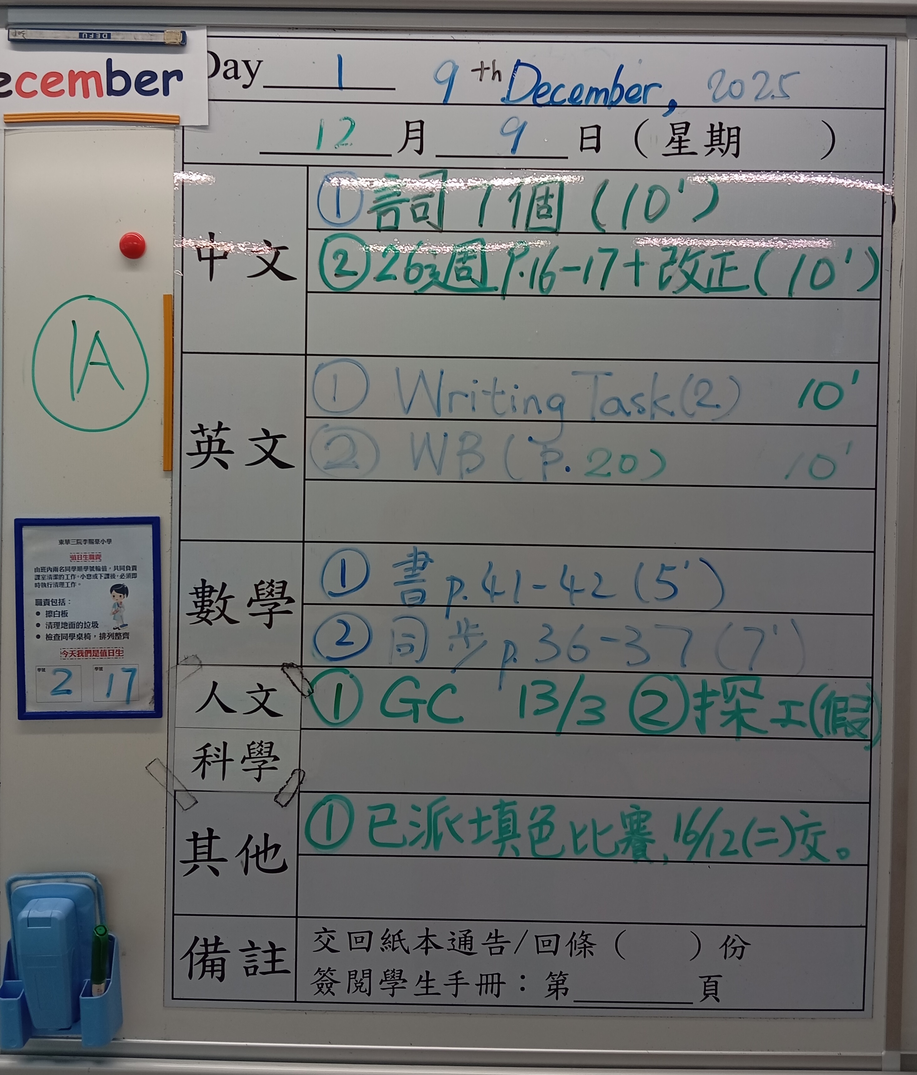 班別家課