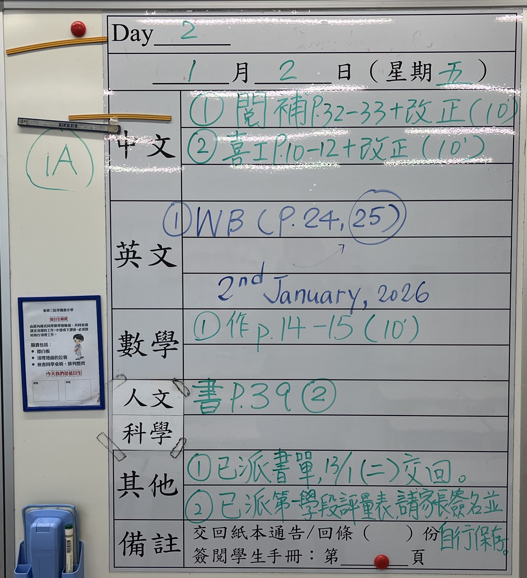 小一小二家課日誌