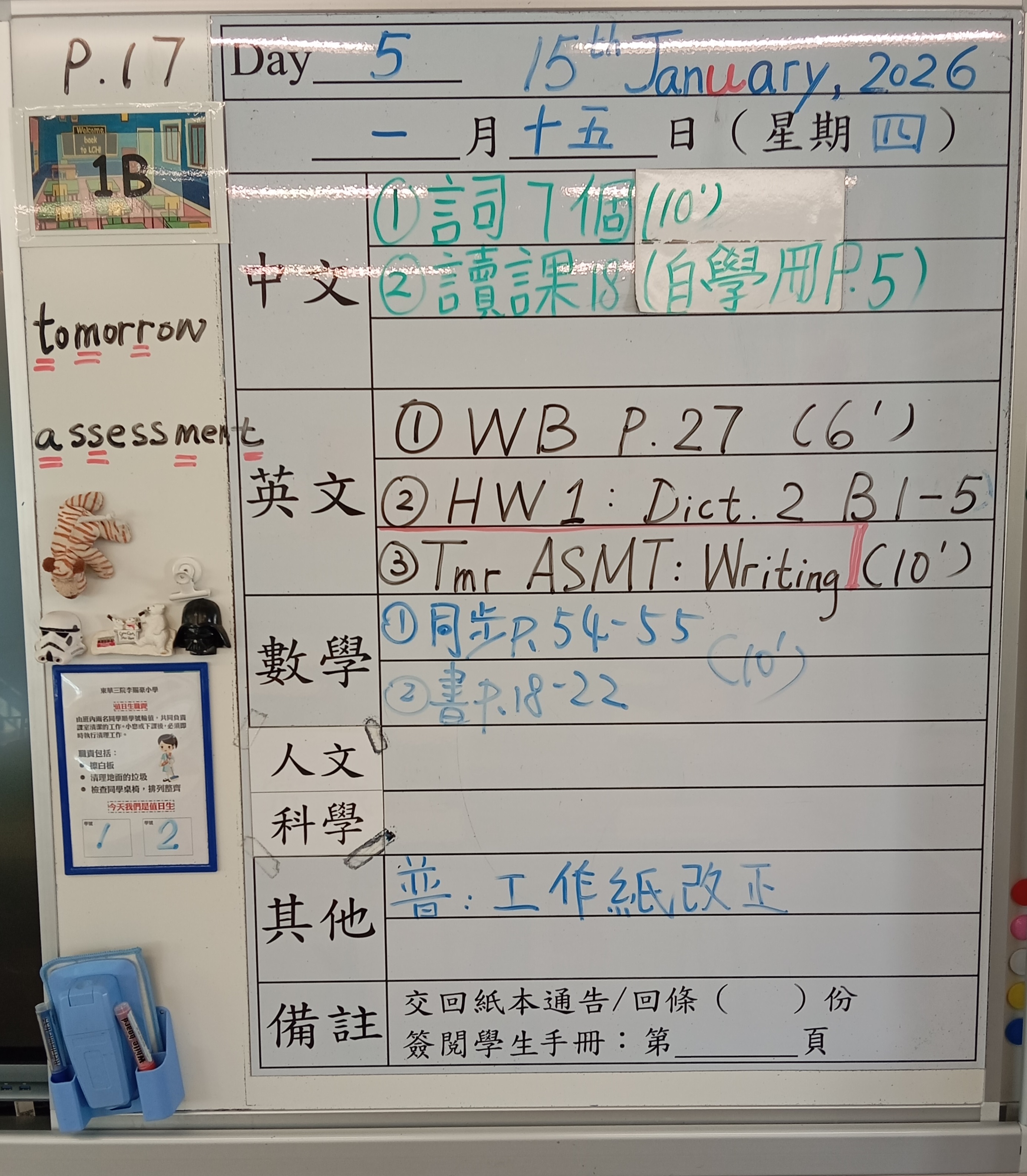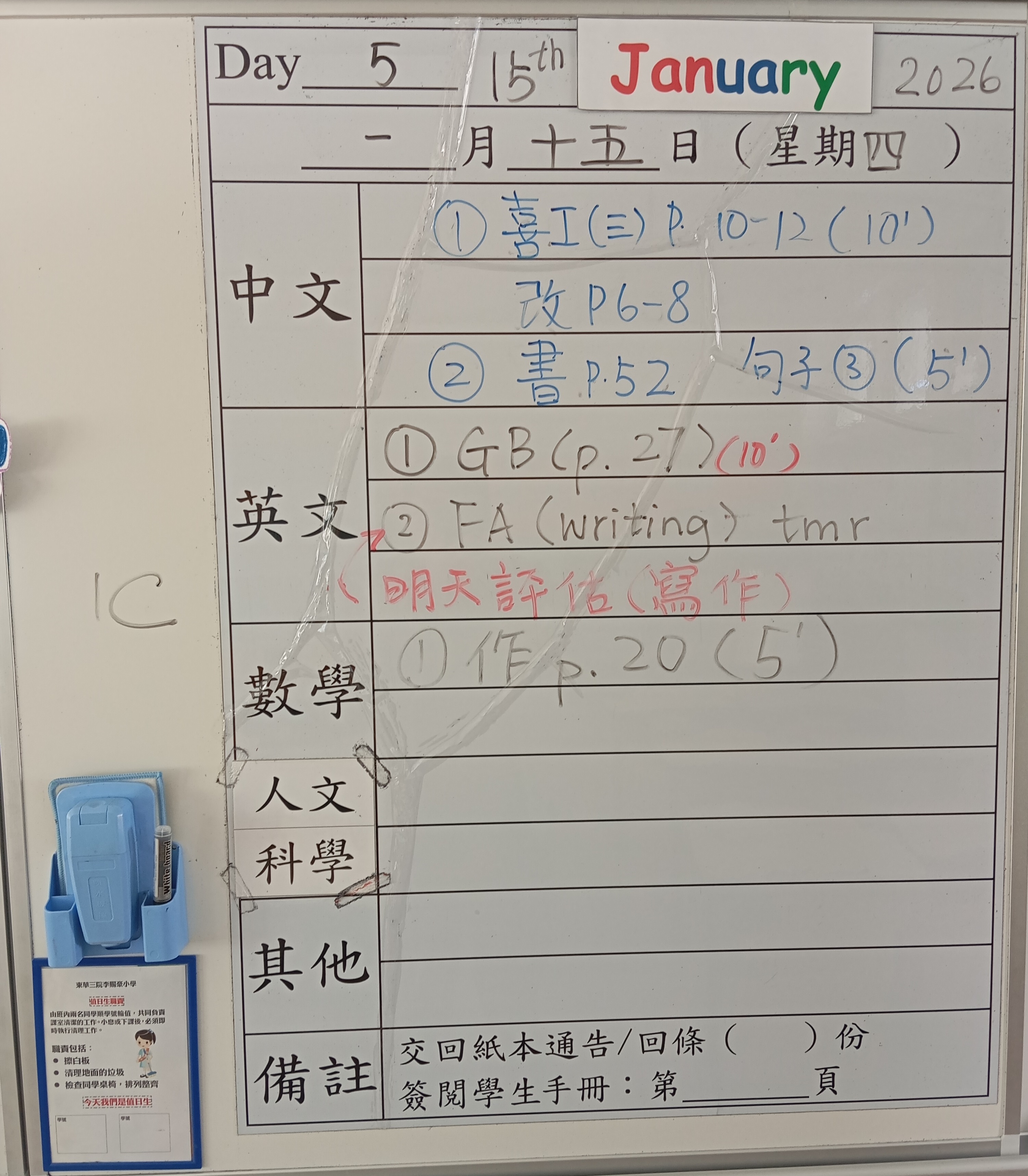 小一小二家課日誌