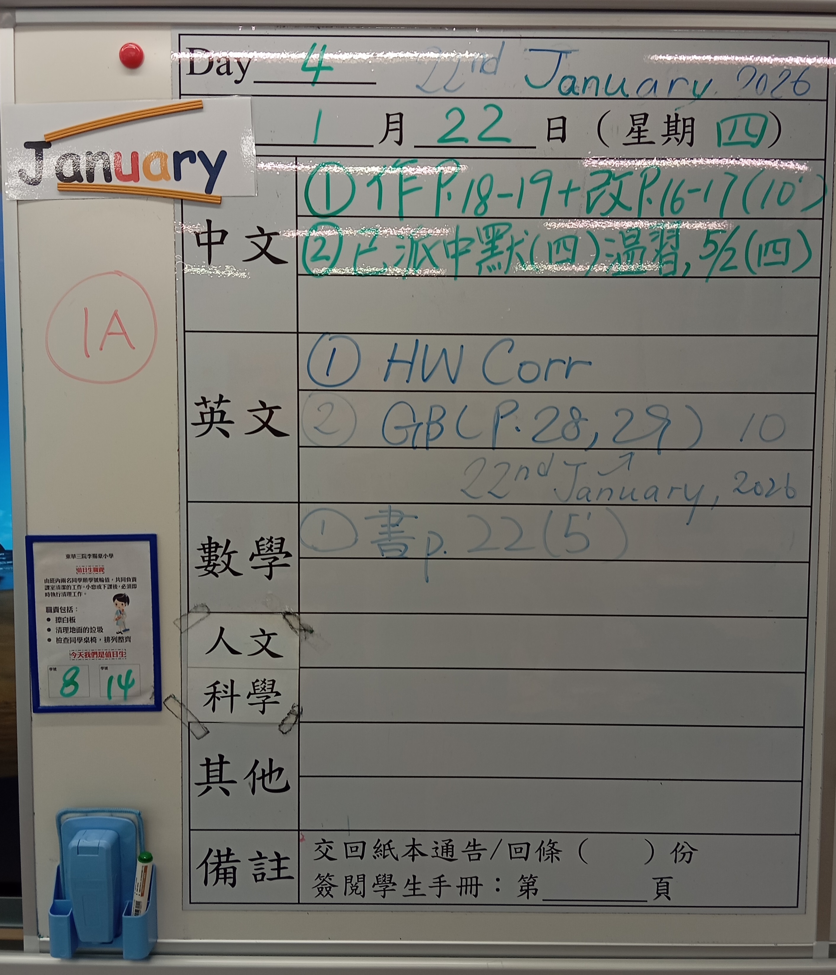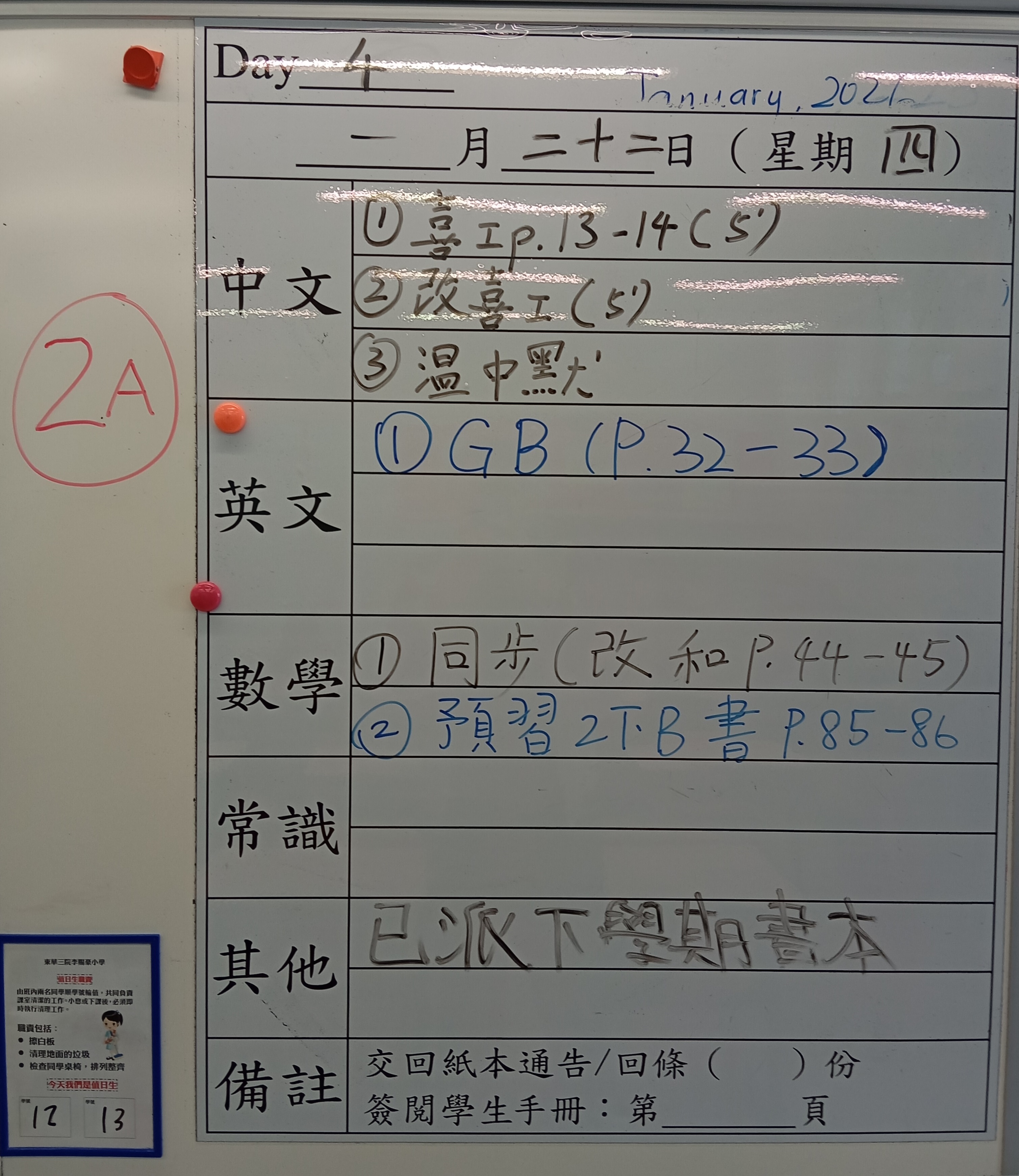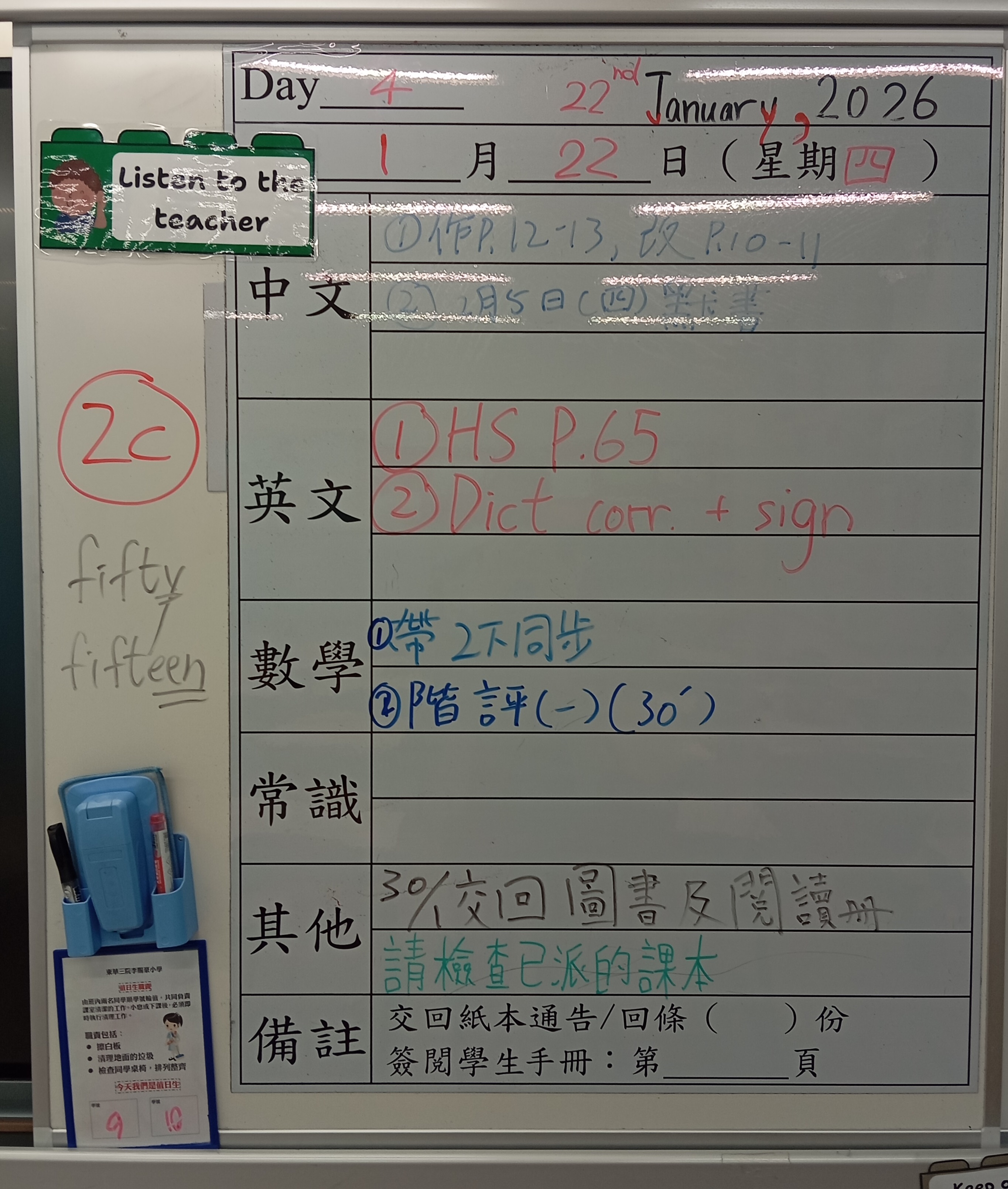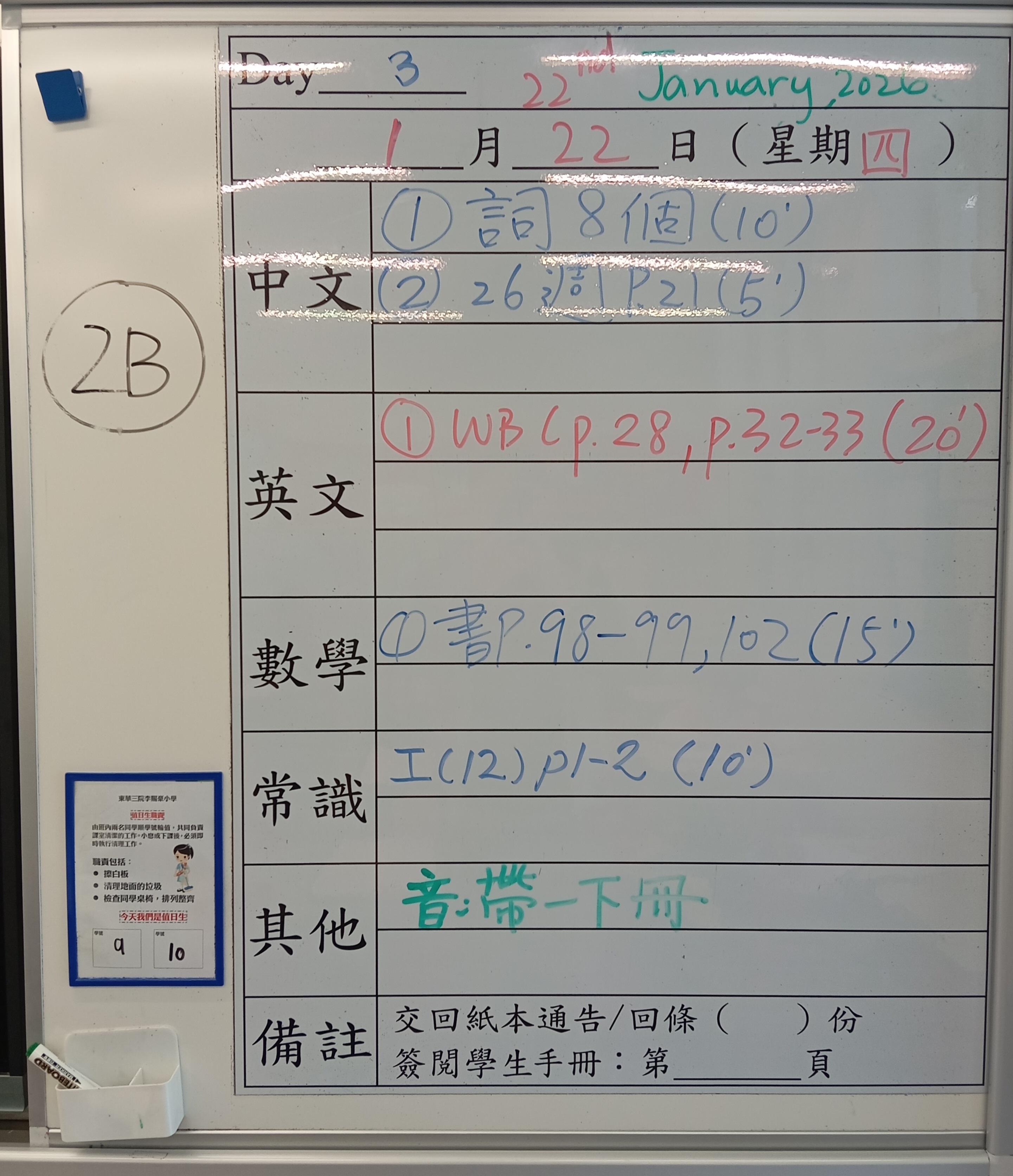 小一小二家課日誌