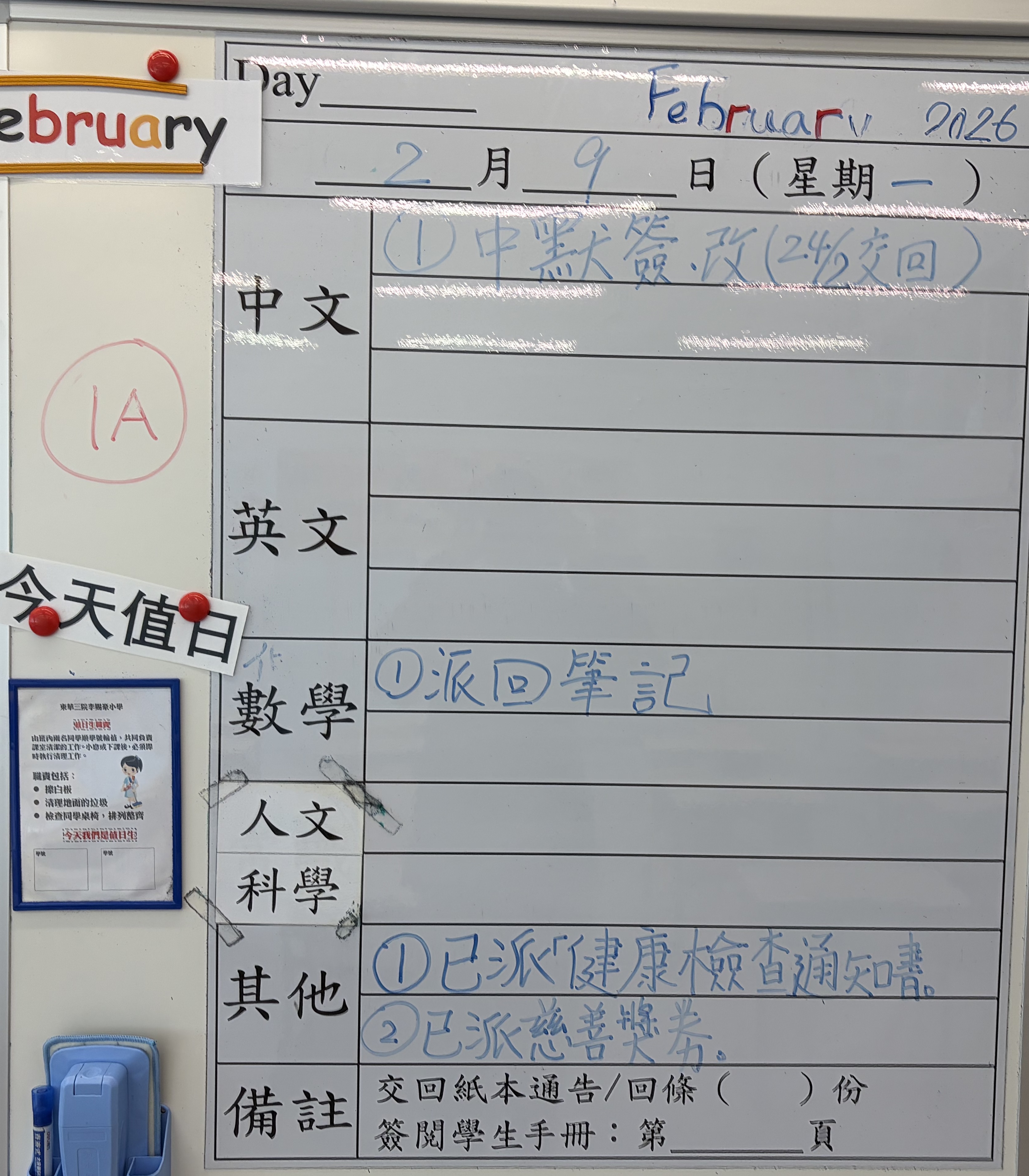 小一小二家課日誌