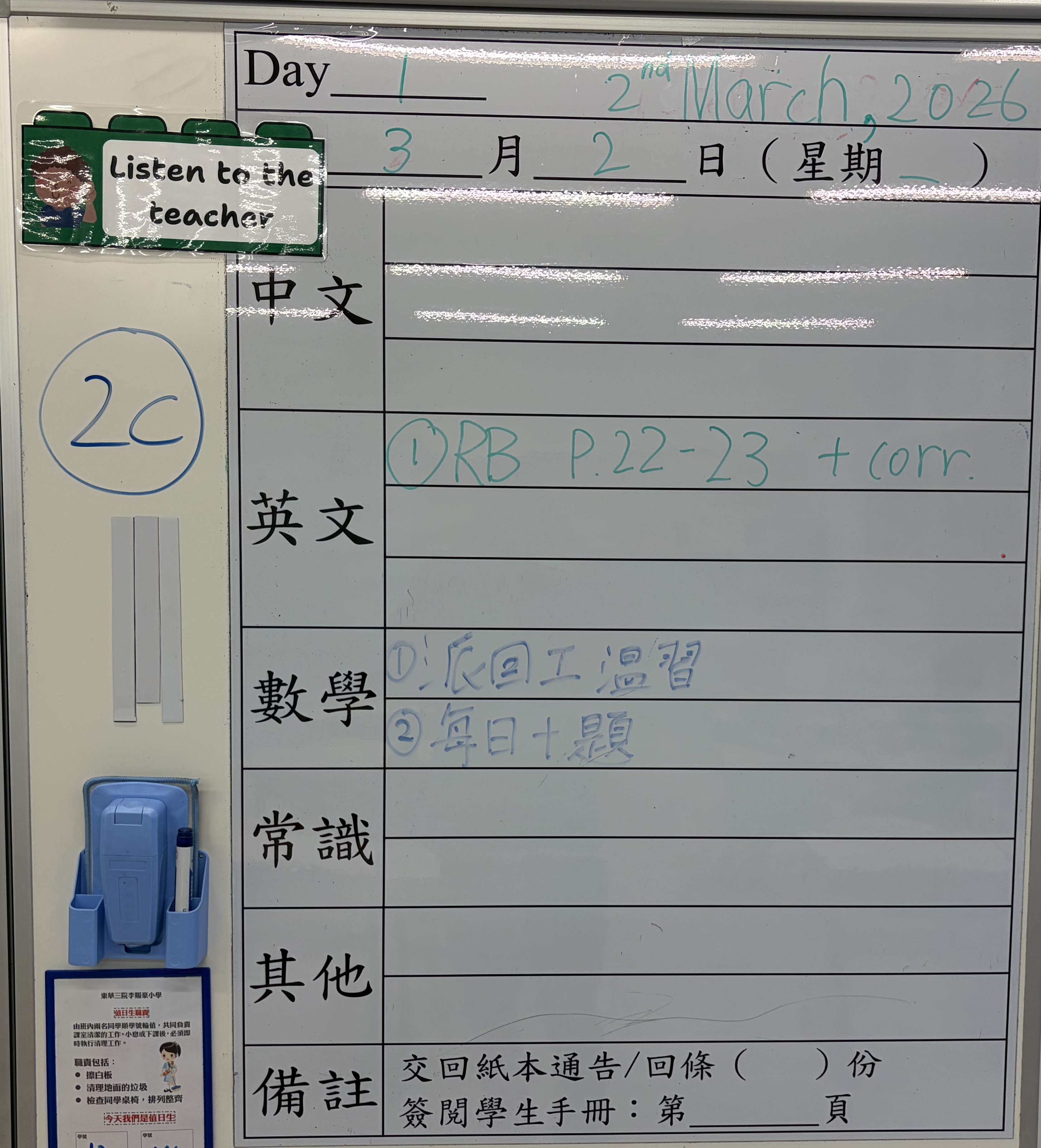 小一小二家課日誌