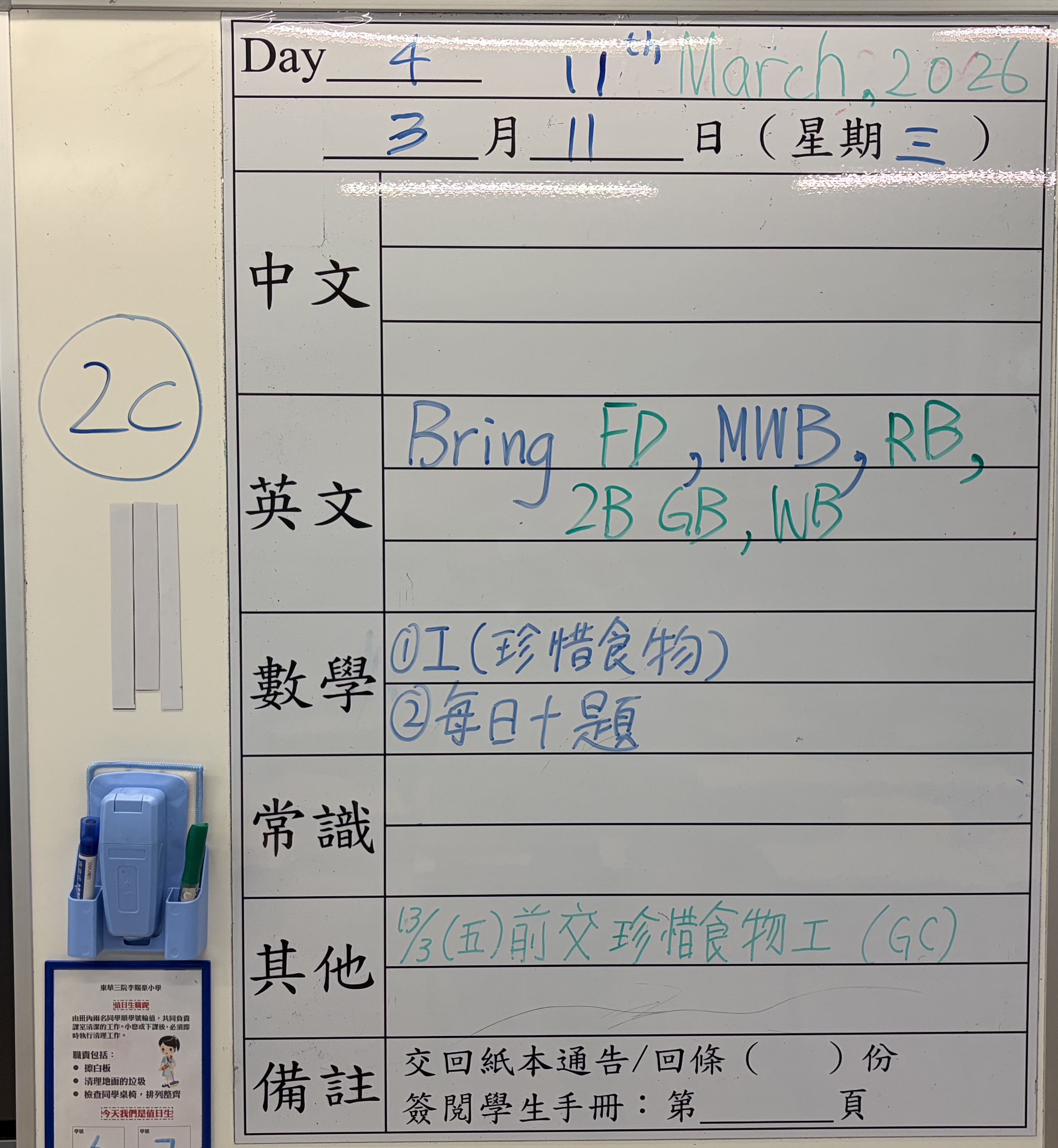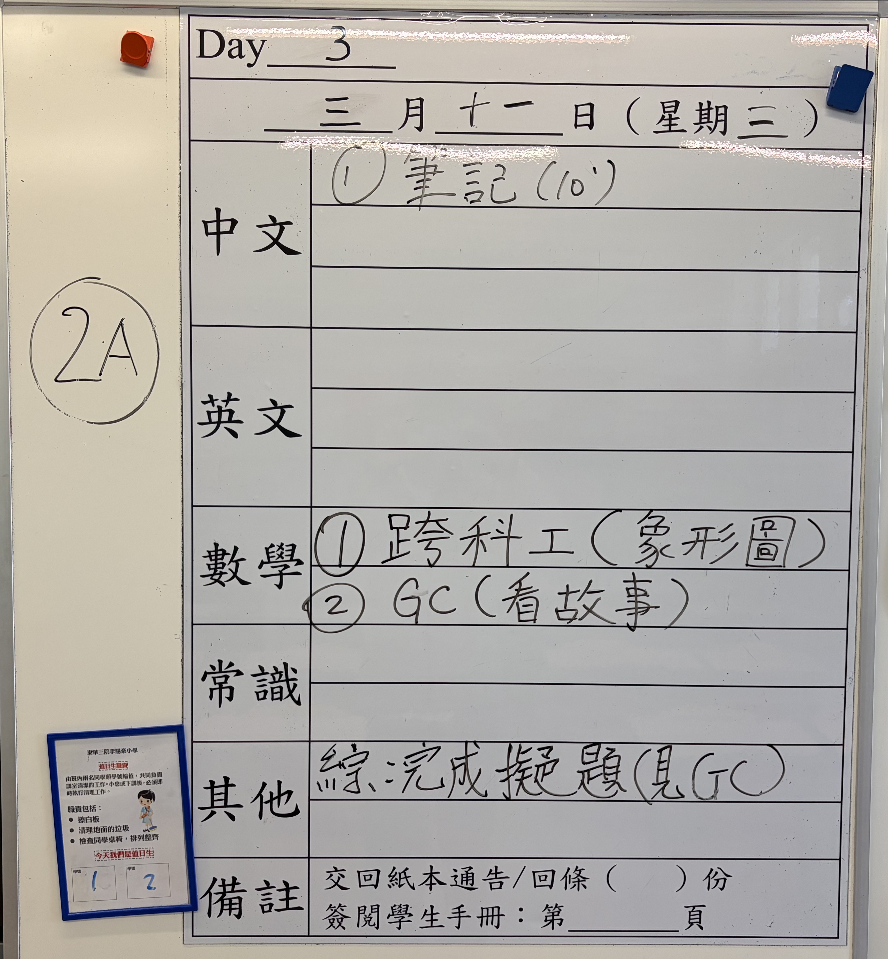 小一小二家課日誌