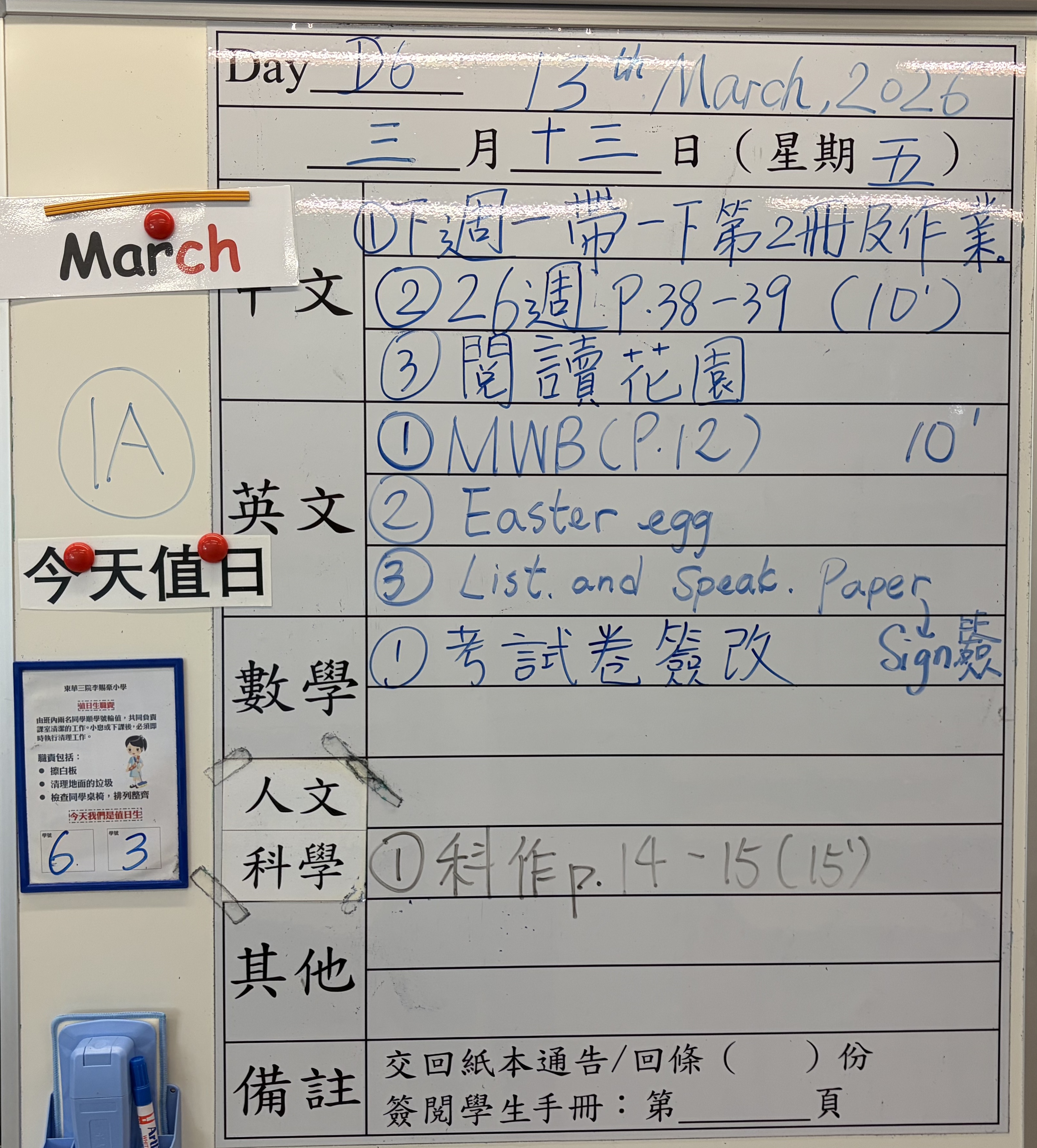 班別家課