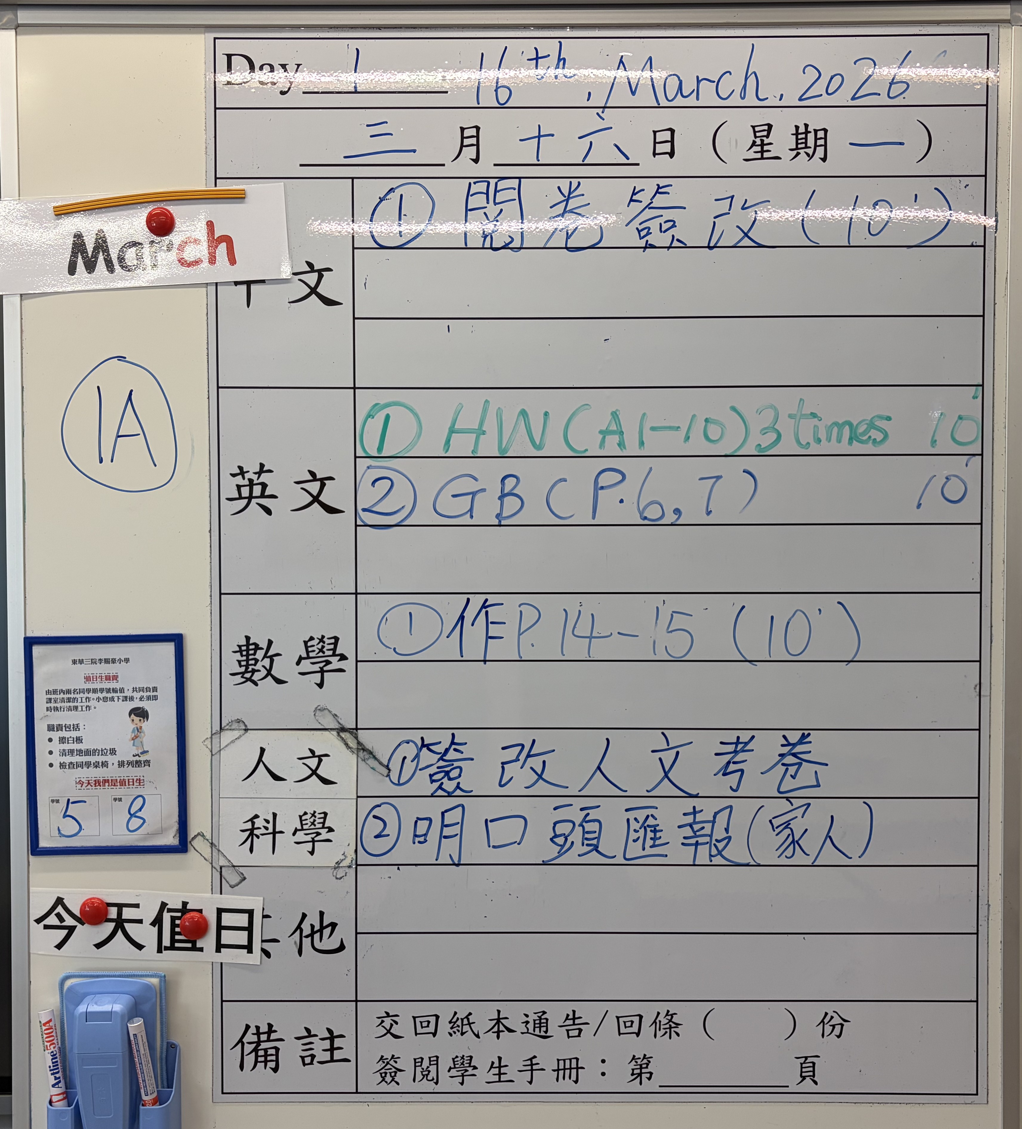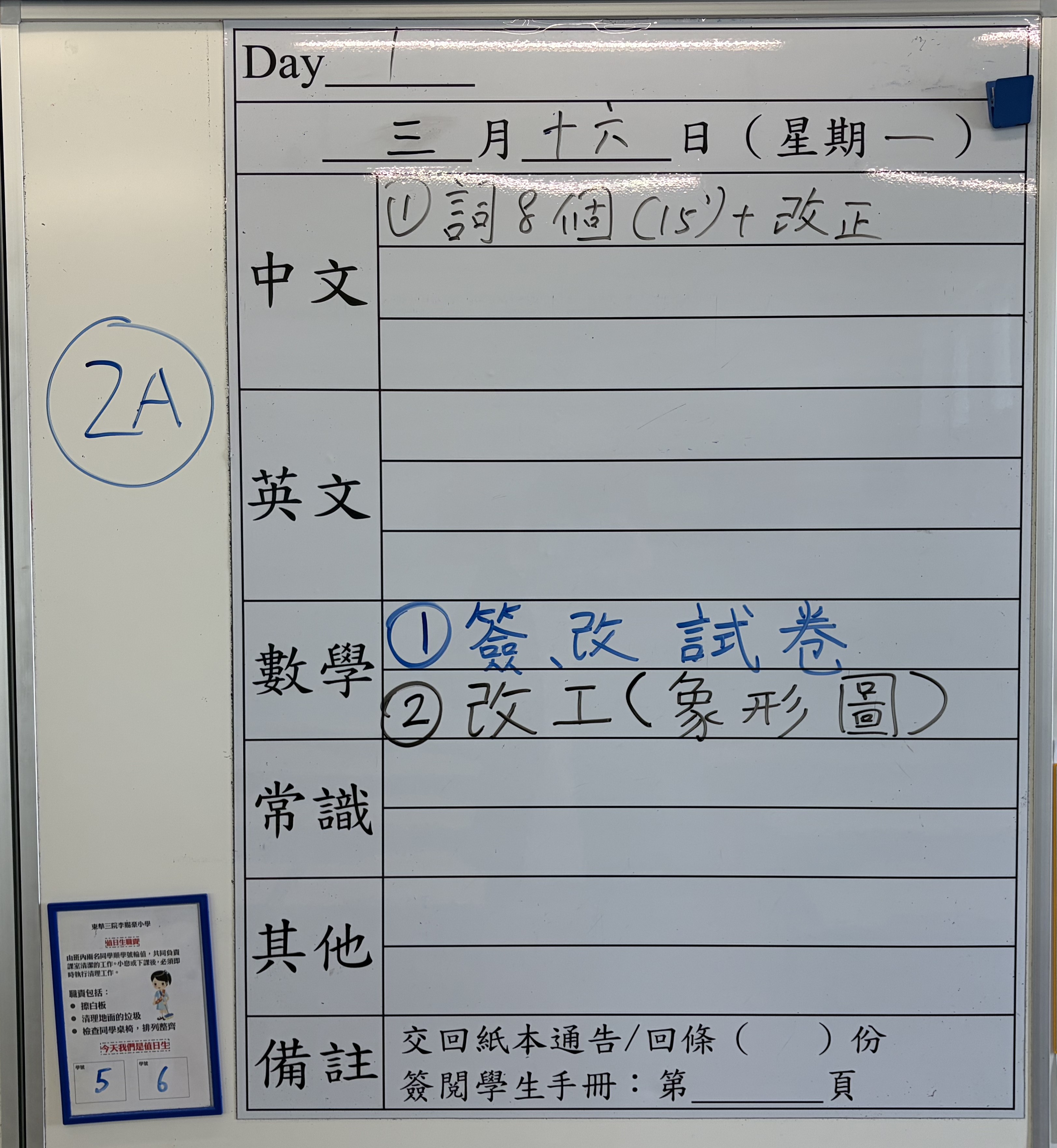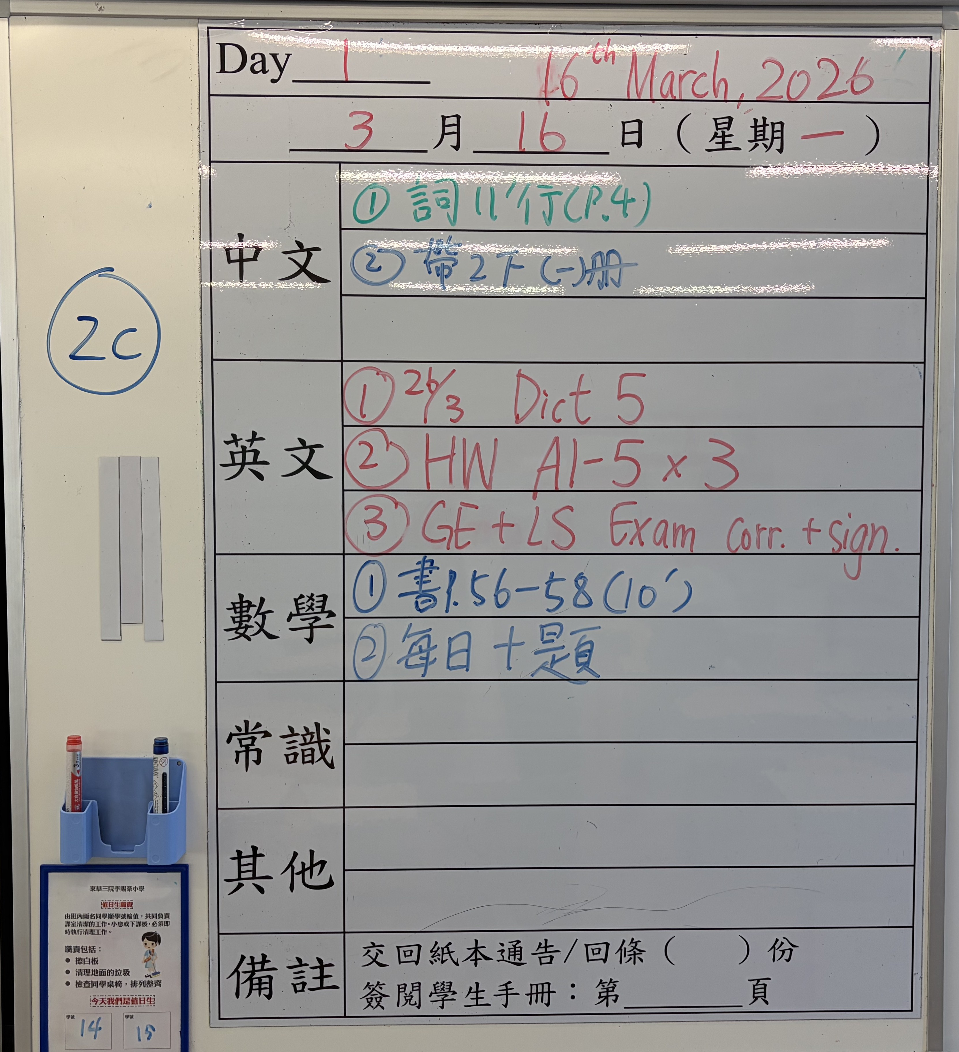 小一小二家課日誌