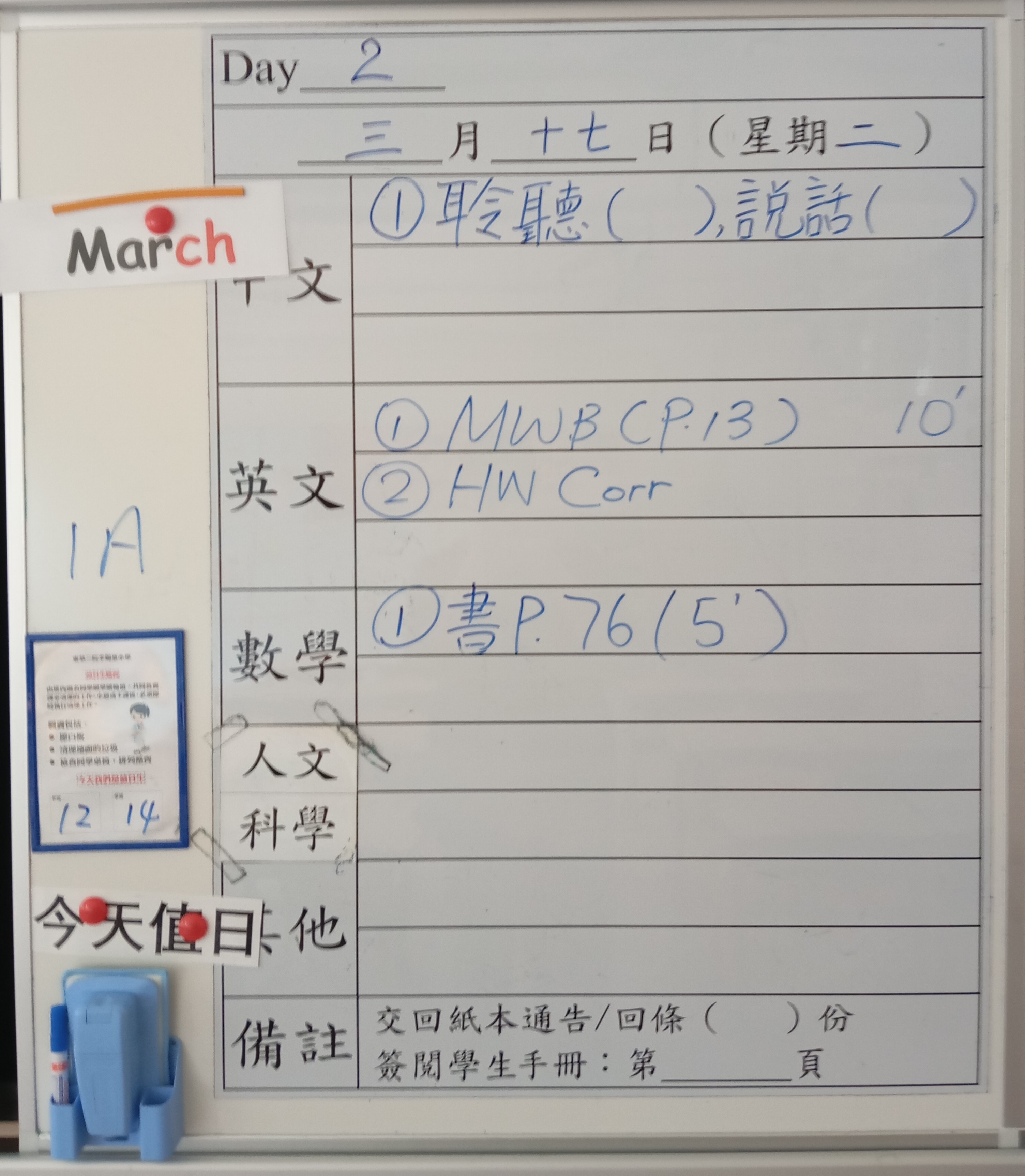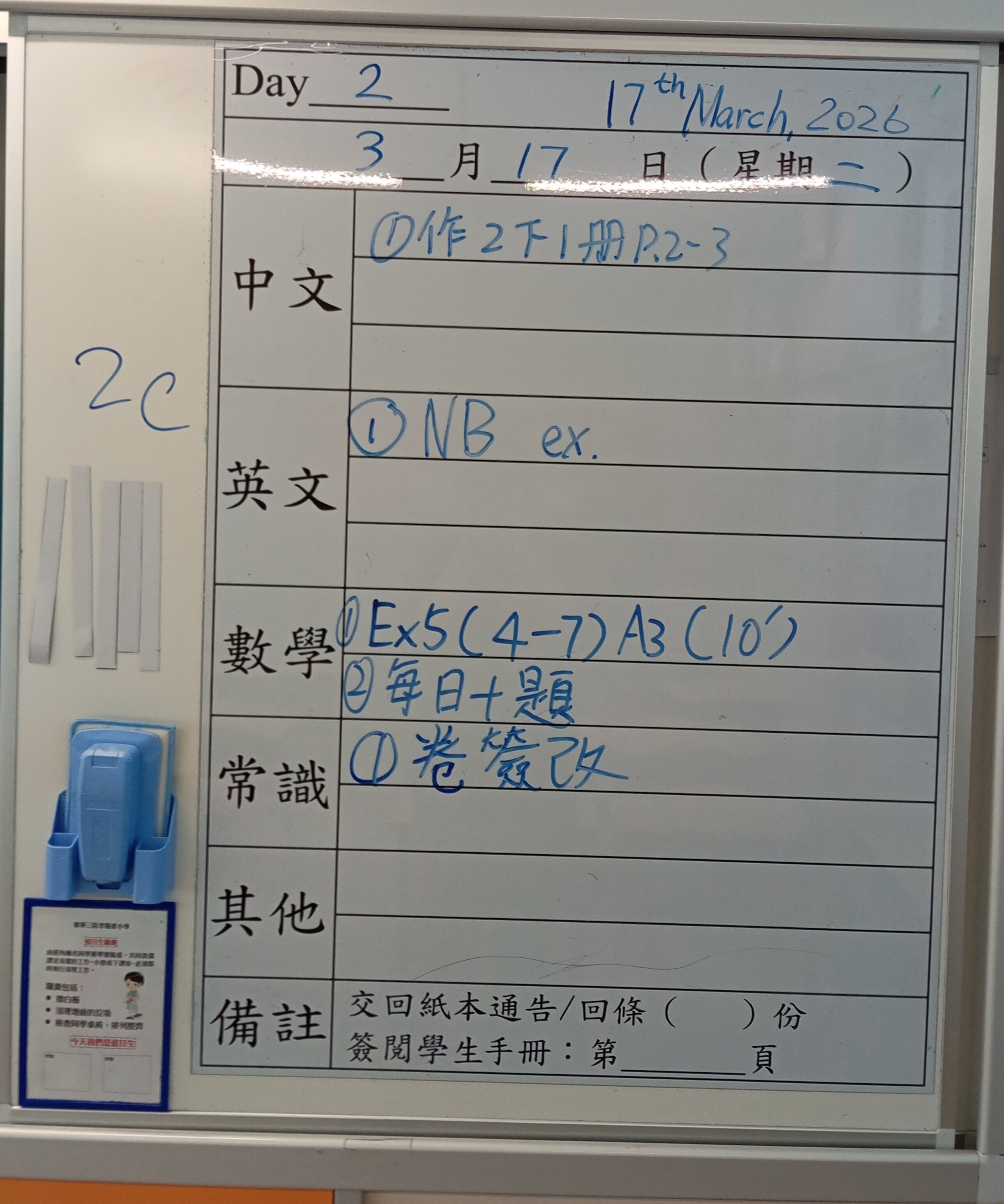 小一小二家課日誌