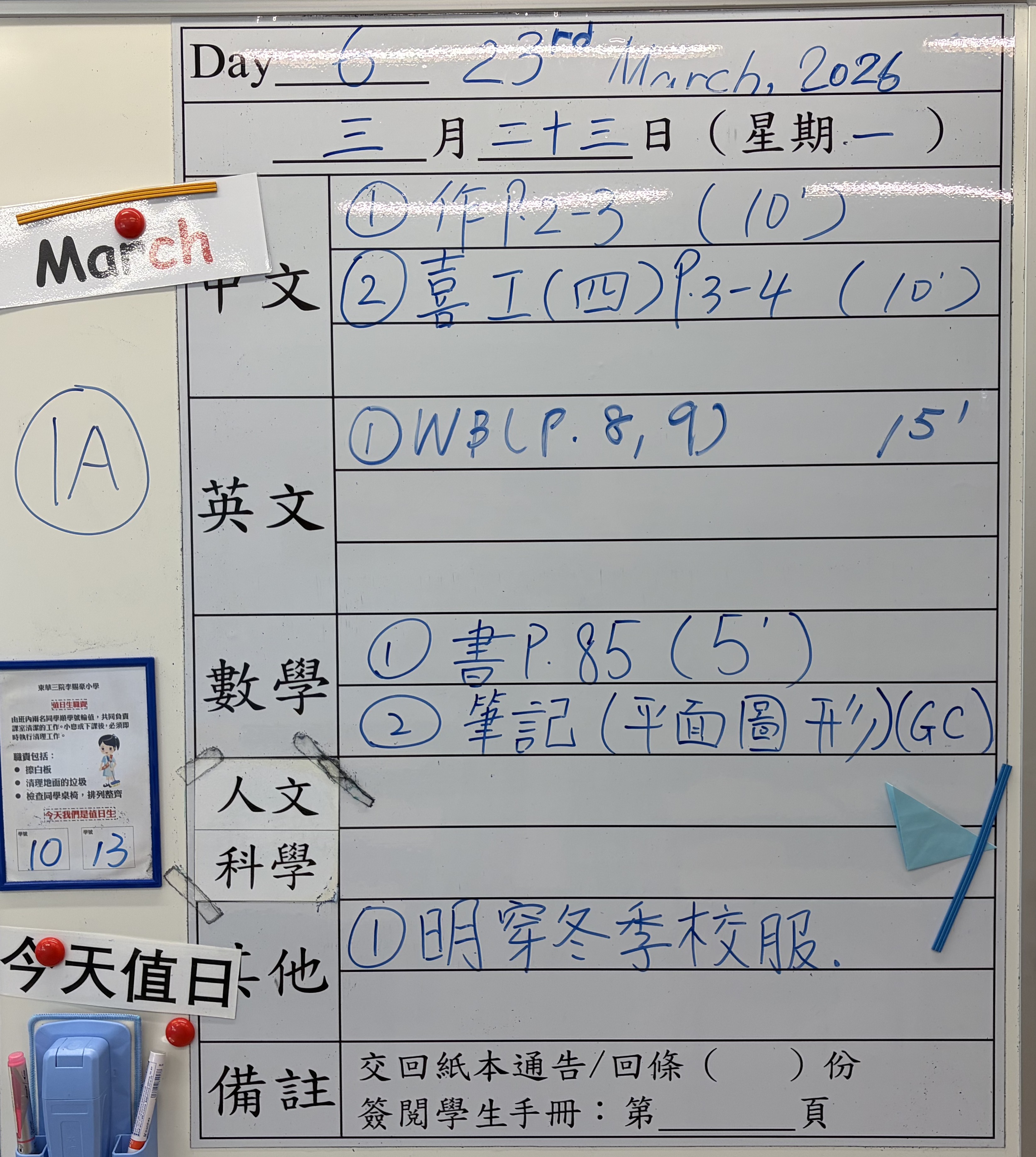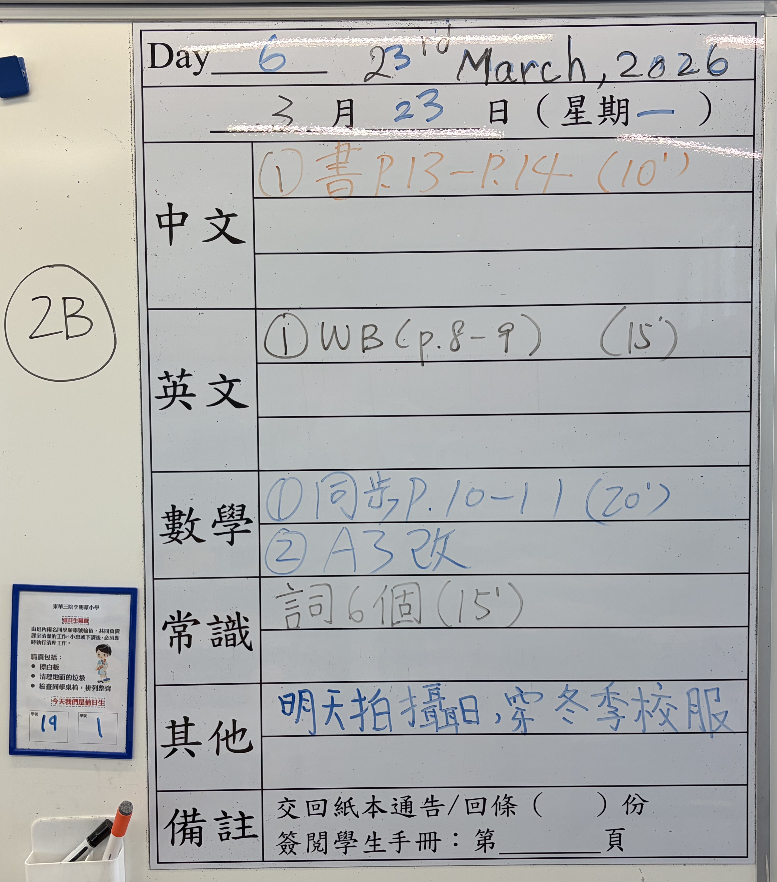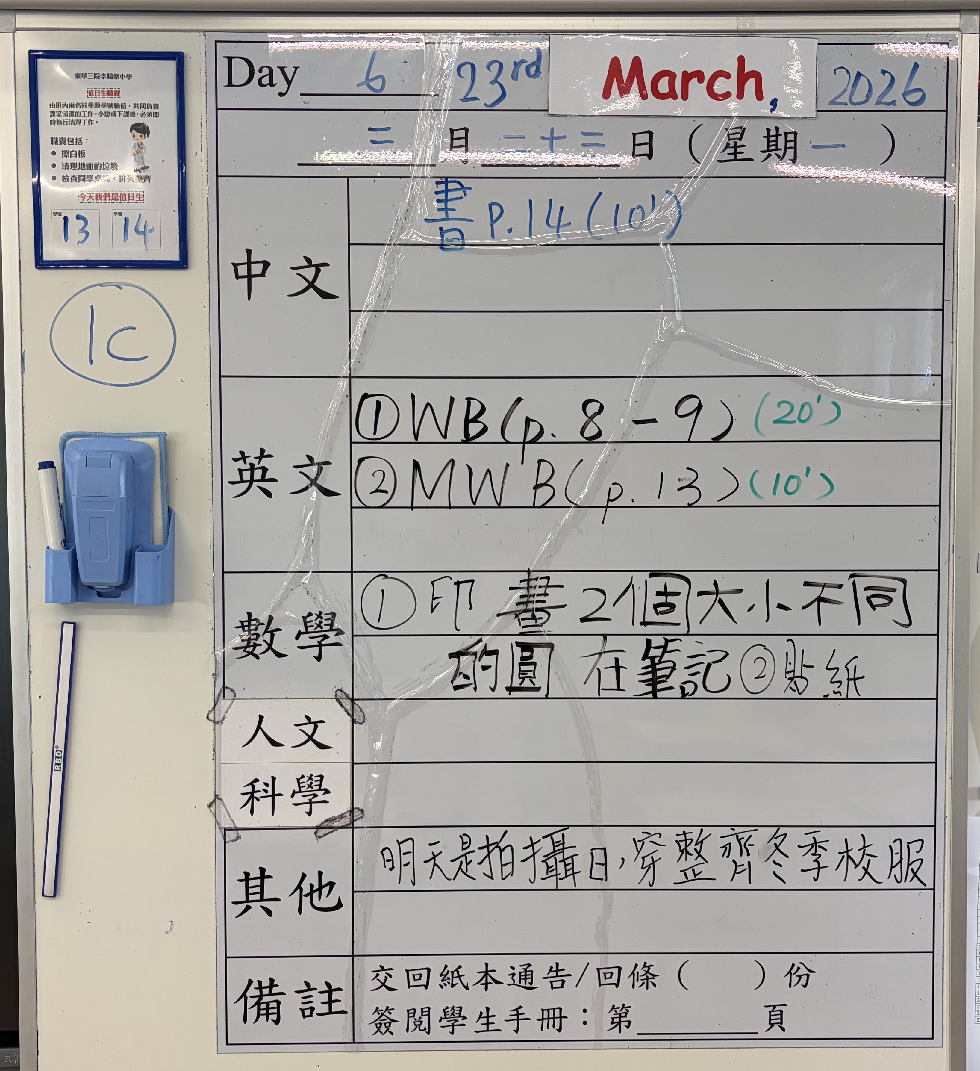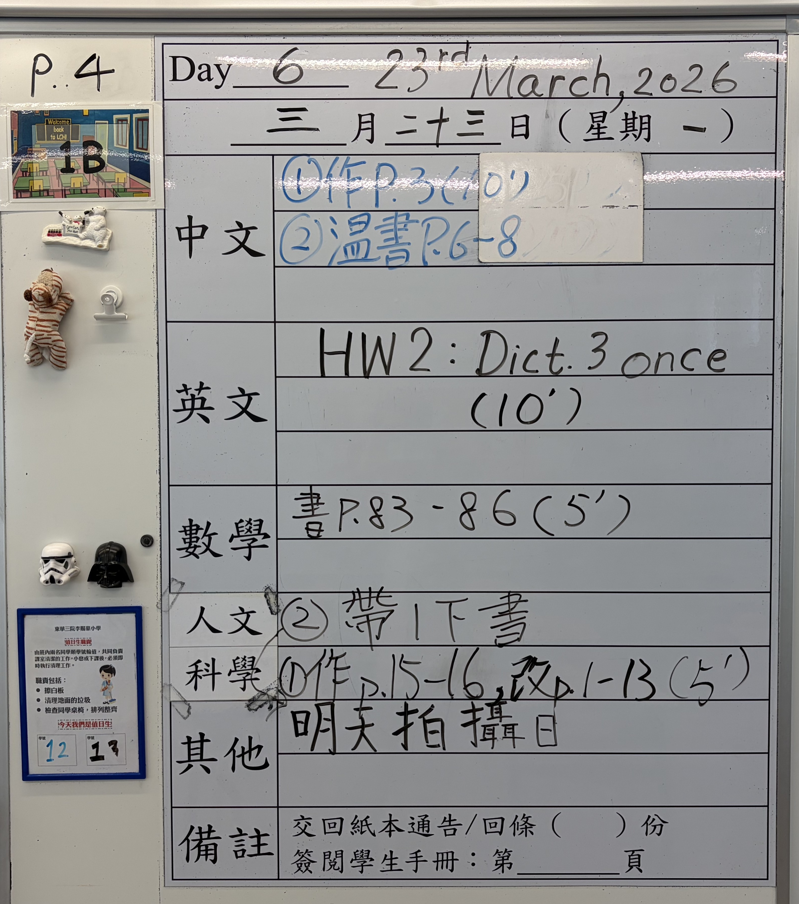 小一小二家課日誌