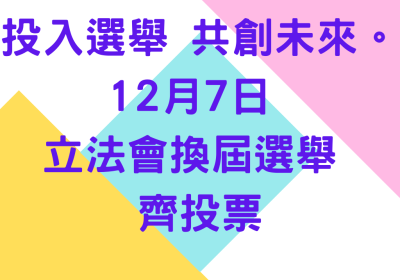 【投入選舉 共創未來。12月7日 立法會換屆選舉 齊投票】
